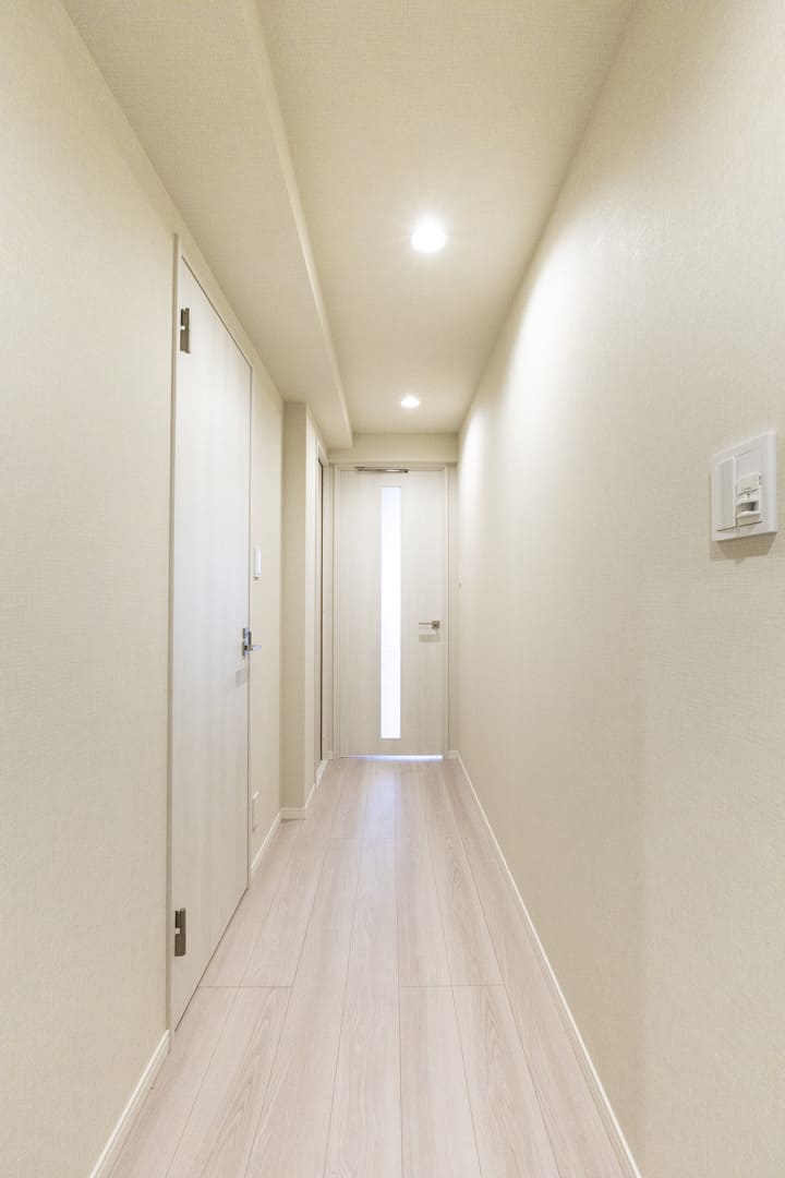 2013年竣工、住友商事旧分譲「クラッシィハウス」シリーズ。鉄筋コンクリート造8階建・総戸数64戸のレジデンスです。清潔感のある外観と丁寧に手入れされた植栽から、日頃の管理の行き届いた様子がうかがえます。オートロックや宅配ボックスを備え、ペットは細則のもと2匹まで飼育可能。京王井の頭線「西永福」駅より徒歩5分、「永福町」駅より徒歩12分の浜田山4丁目アドレスで、落ち着いた街並みと生活利便性を兼ね備えた立地も魅力です。今回ご紹介するお部屋は5階部分、専有面積65㎡の2LDK。日当たり良好な南西向きです。約16帖のLDKには明るい陽光が差し込み、木目天井と間接照明が洗練された空間を演出。床暖房付きで、心地よい寛ぎの時間をお過ごしいただけます。