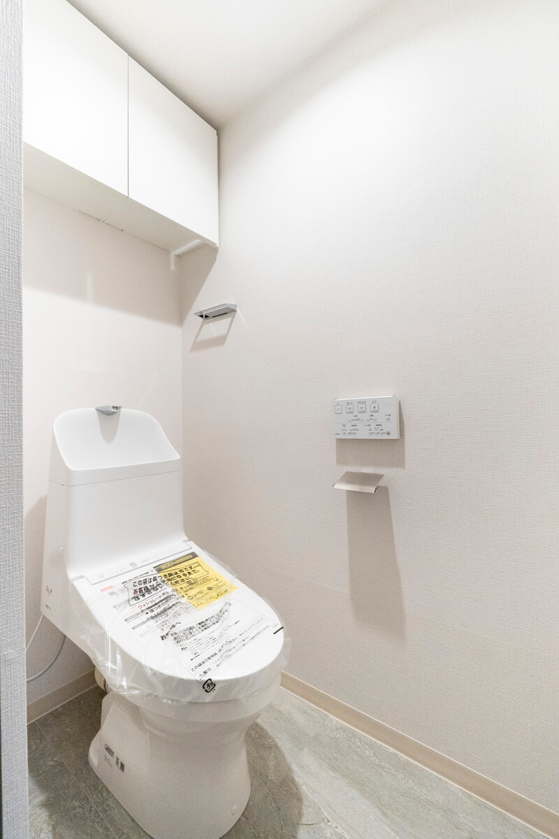 廊下に面したレストルーム。手洗いタンク付きのトイレです。ウォシュレット、収納スペースも備わっています。