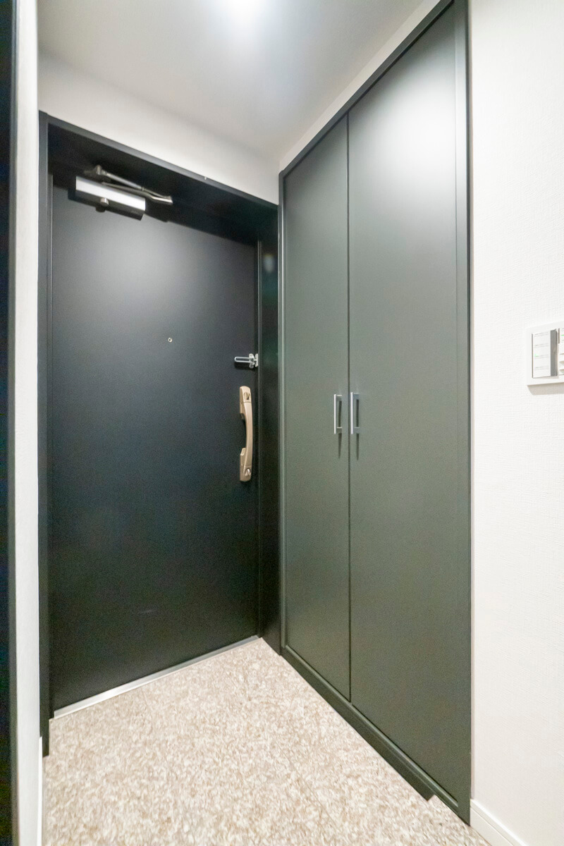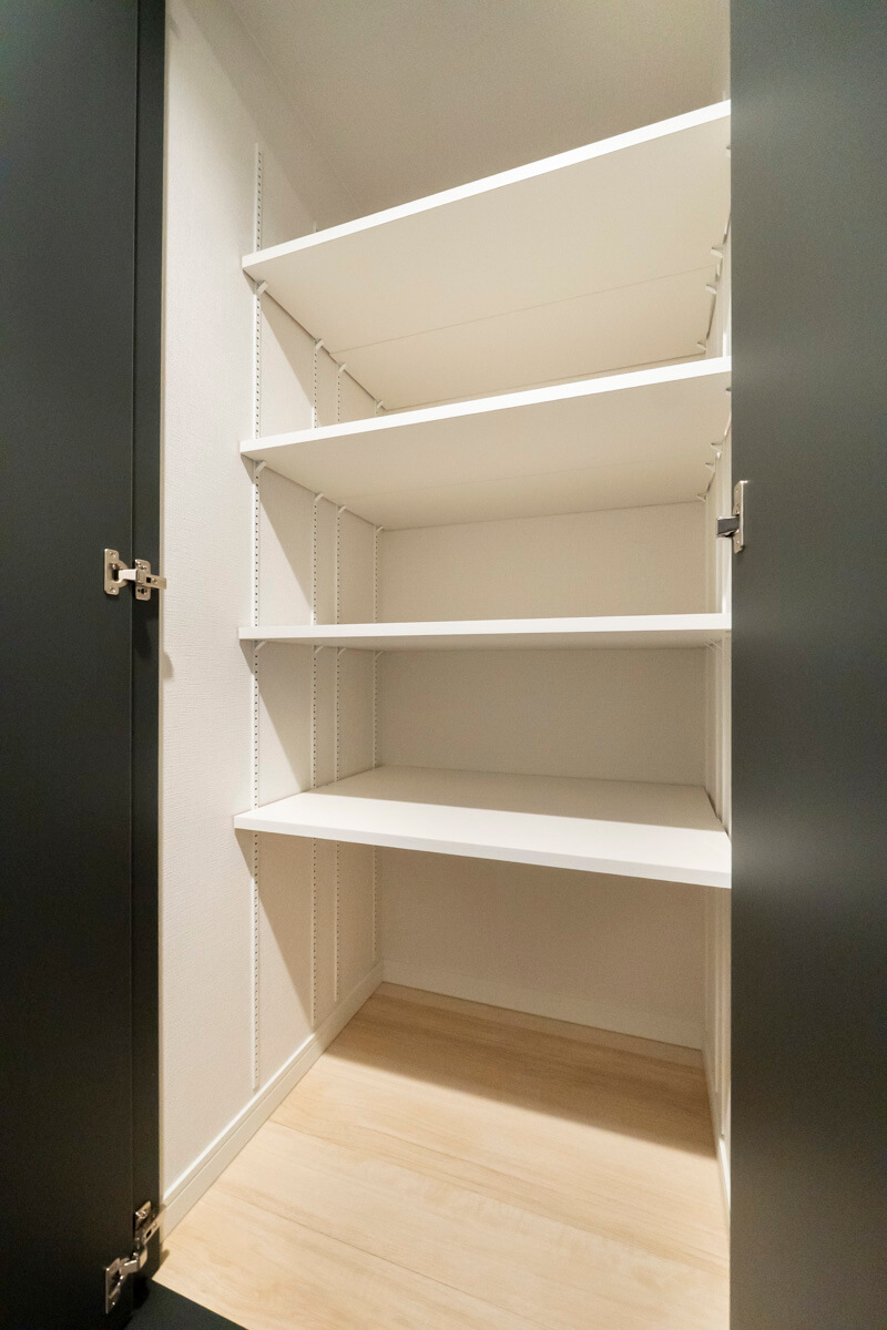 玄関には天井まで高さのあるシューズクローゼットを完備。奥行きがあるので、靴はもちろん、スポーツ用品なども収納できそうな広さです。