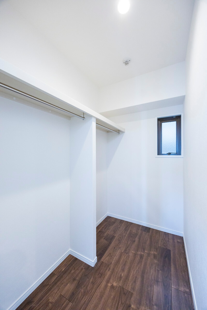 約8.8帖の寝室1は、ゆとりがあって主寝室に良さそうです。大きめのベッドも配置できて、ゆっくりと寛ぐことができそうですよ。また、奥行きがあるウォークインクローゼット付きのため、洋服や大きめの荷物も収納が可能です。窓があるのも◎。