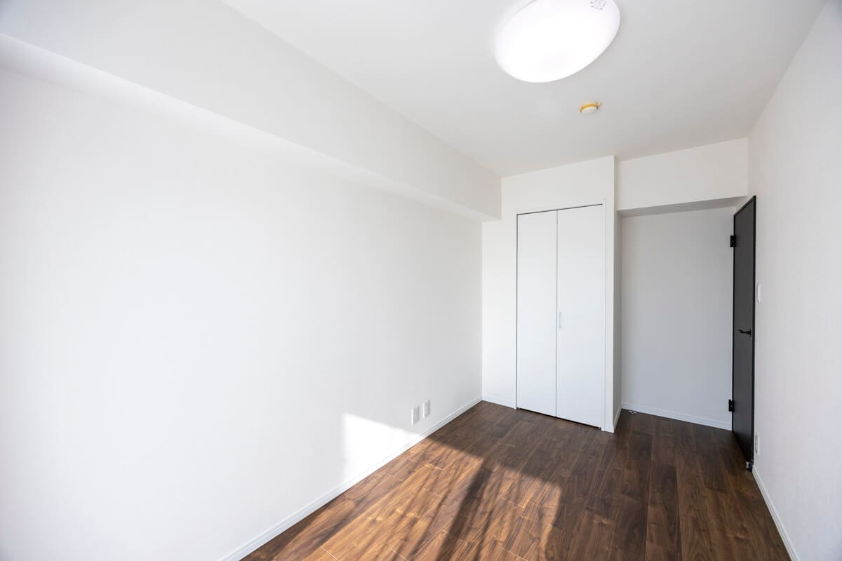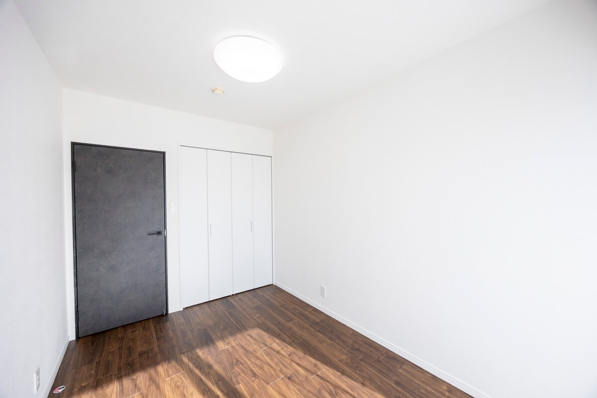 約5.7帖の寝室3は、書斎や趣味部屋など色々な使い方ができそうです。開口部が広くて物の出し入れがしやすいクローゼット付き。マンション特有の大きな梁もないため、家具のレイアウトがしやすくなっています。