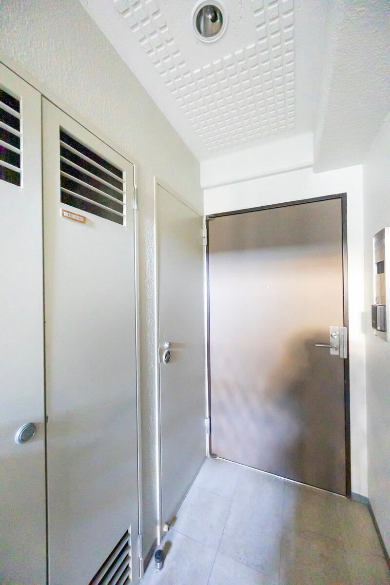 玄関外にはポーチが造られており、防犯面に配慮されています。ドアを開けて、隣人と鉢合わせ、ということもないので嬉しいですね。