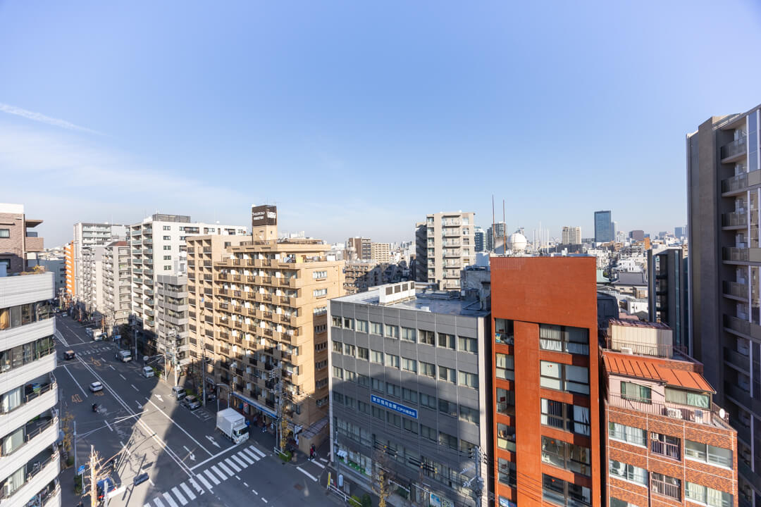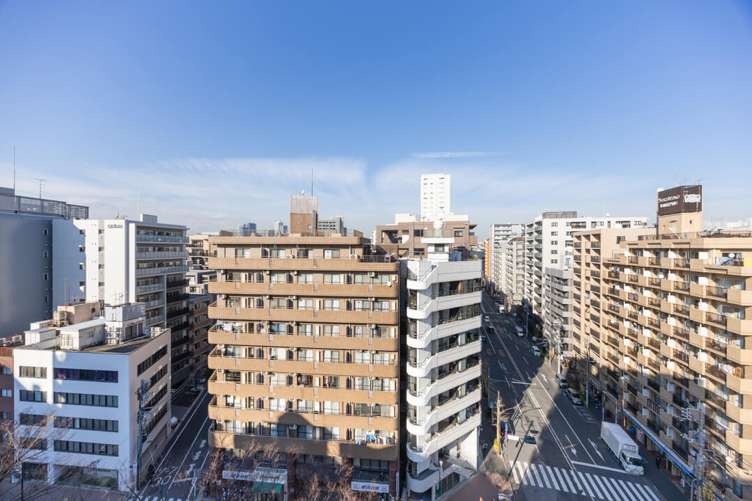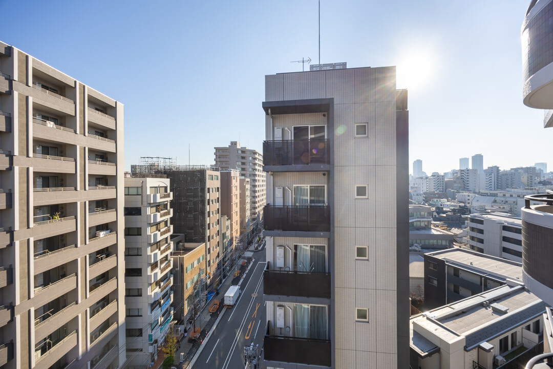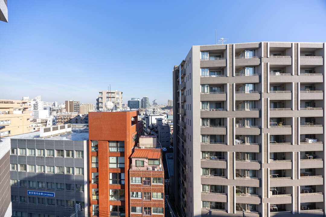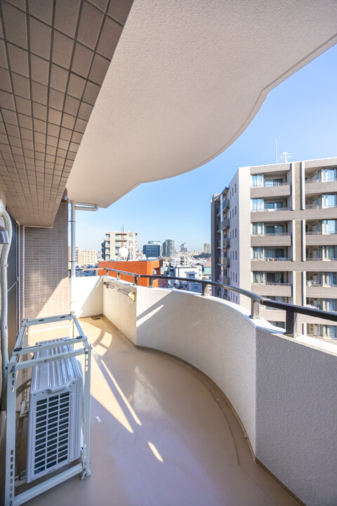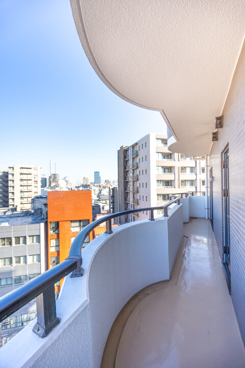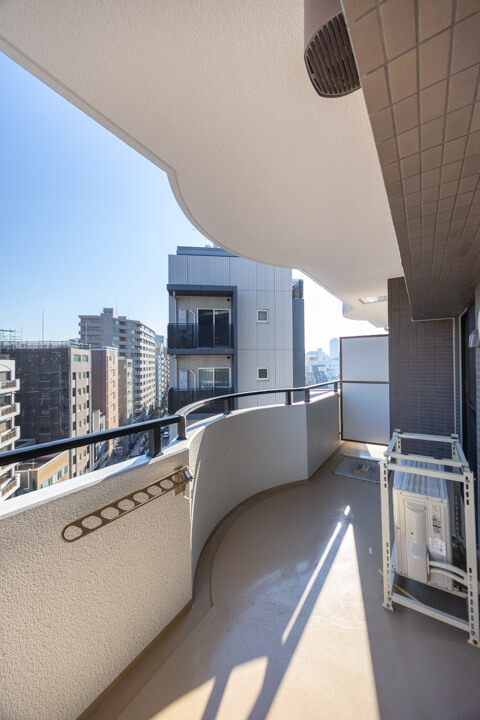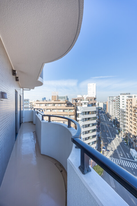 北東側と南東側に位置する2面バルコニー。角部屋につき全居室バルコニーが付いた空間設置になっています。10階部につきどちらのバルコニーからも眺望良好です。