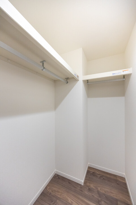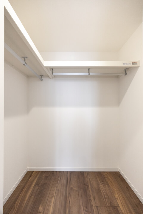 約5.0帖の洋室1。リビングダイニングと繋げてより広々過ごせます。床にドアレールがないので見た目もすっきりとした印象。レールにホコリがたまる心配もないので衛生的にも◎です。WIC(ウォークインクローゼット)付きで収納スペースも充実しています。