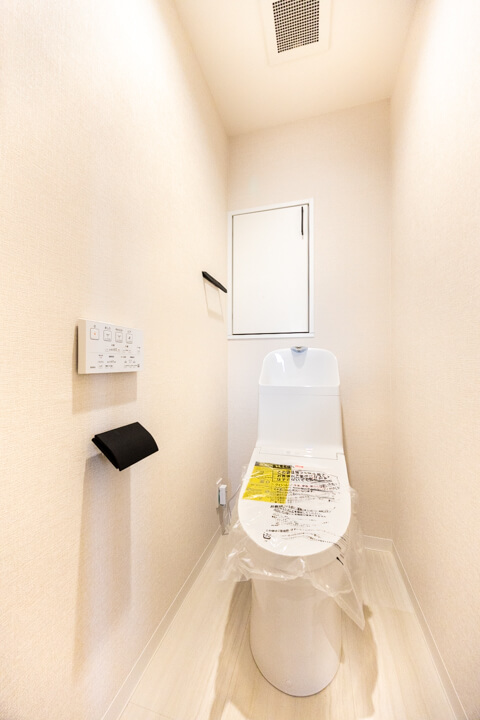 廊下に面したレストルーム。手洗いタンク付きのトイレです。ウォシュレット、収納スペース付きです。