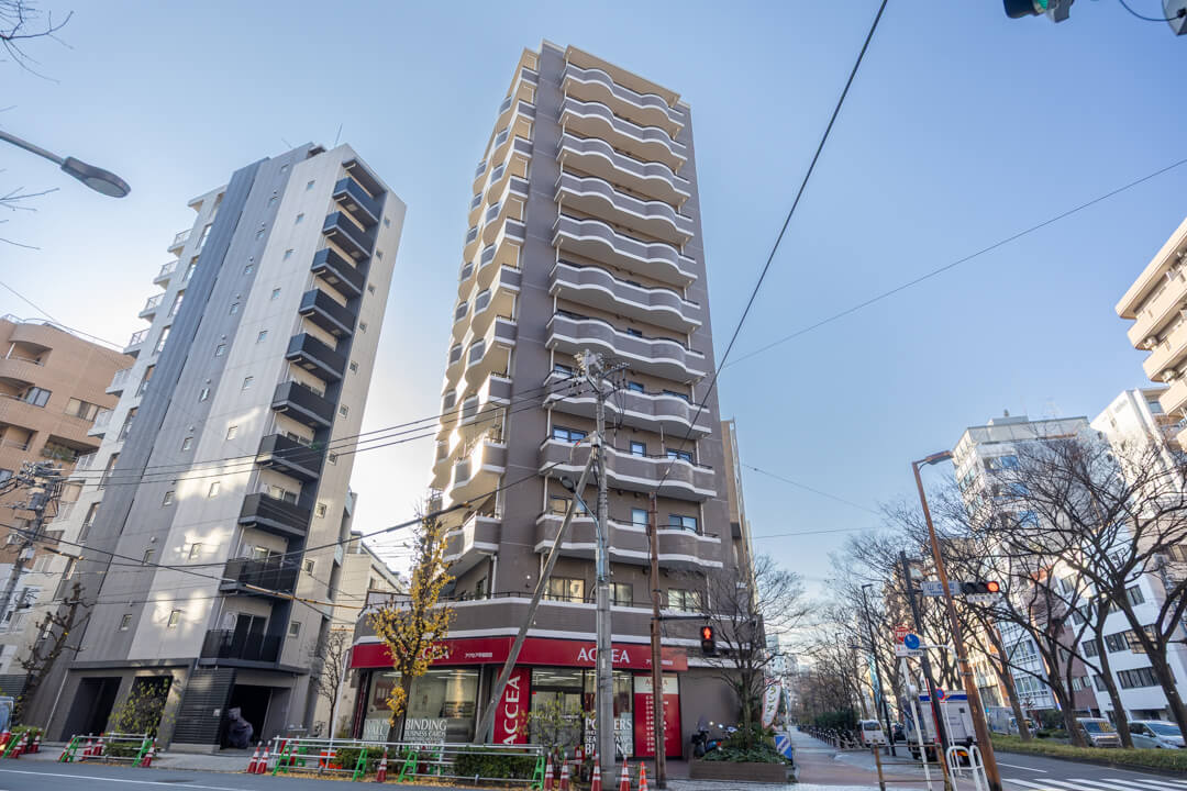 1995年(平成7年)10月に竣工の本マンション。12階建て、総戸数25戸の小規模マンションです。各住戸の専有面積は約39㎡~76㎡台、間取りは1LDK~3LDKでシングルからファミリー層まで幅広い世帯に対応しています。セキュリティ面はオートロック、TVモニター付きインターホン導入で安心。敷地内には駐輪場が完備されています。飼育細則がありますがペットとの暮らしも可能です。