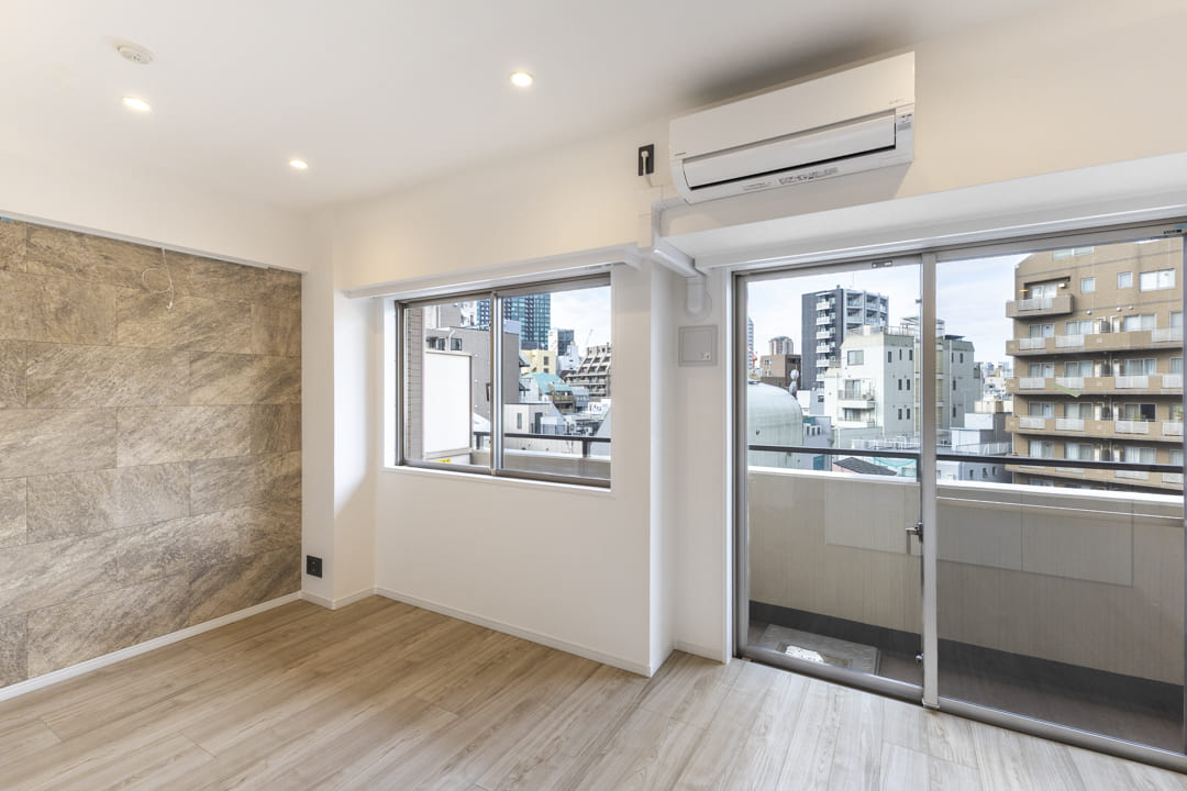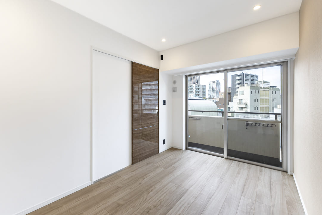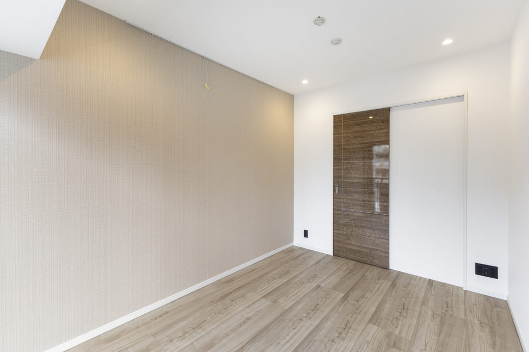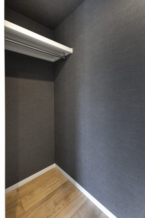 約6.0帖の洋室。バルコニー付きで奥行きが生まれます。また、さりげないアクセントウォールが落ち着く空間を演出してくれます。収納面ではWIC(ウォークインクローゼット)を完備。衣類はもちろん、トランクケースやゴルフバッグといった大きな荷物も収納でき、居室空間を有効活用できます。