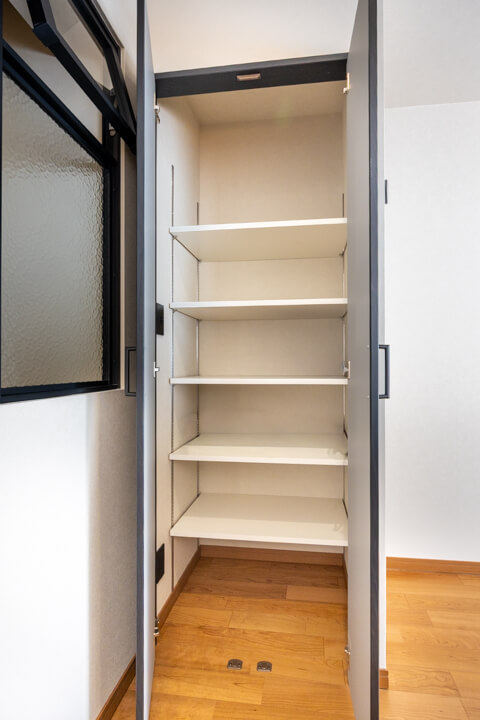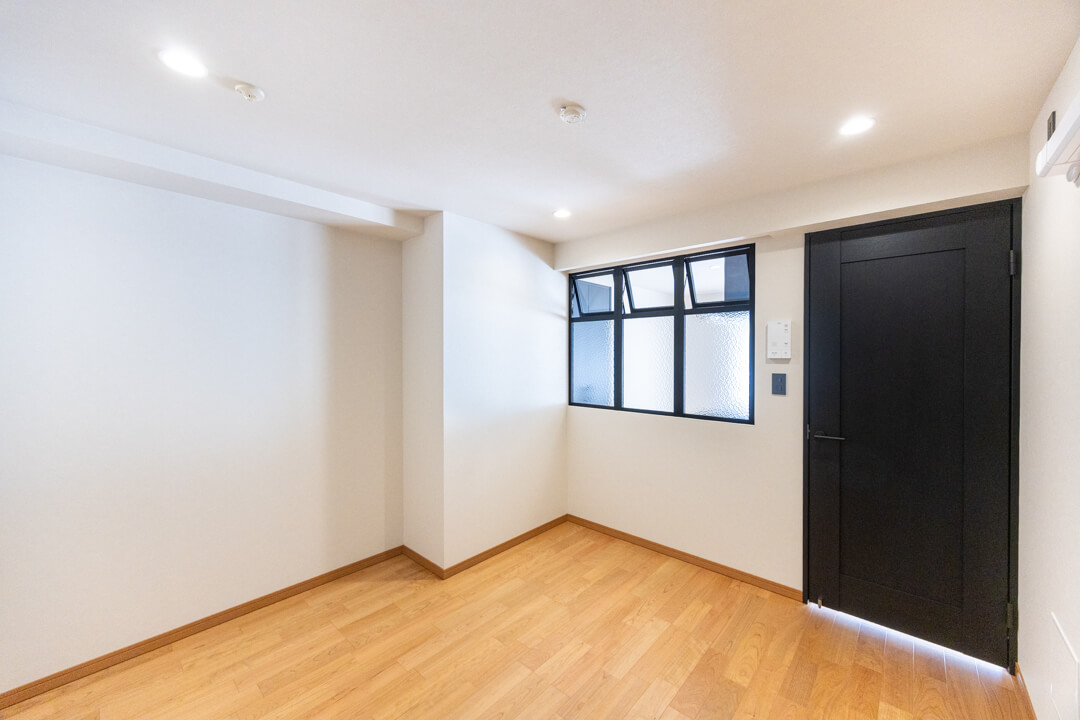 約5.6帖の洋室。インテリアのアクセントにもなる室内窓はキッチン横に面していて、別室にいながらも家族の存在が感じられます。こちらのお部屋にもWIC(ウォークインクローゼット)が設けられて収納スペースが充実。洗面室へ直接出入りできる動線も確保されています。