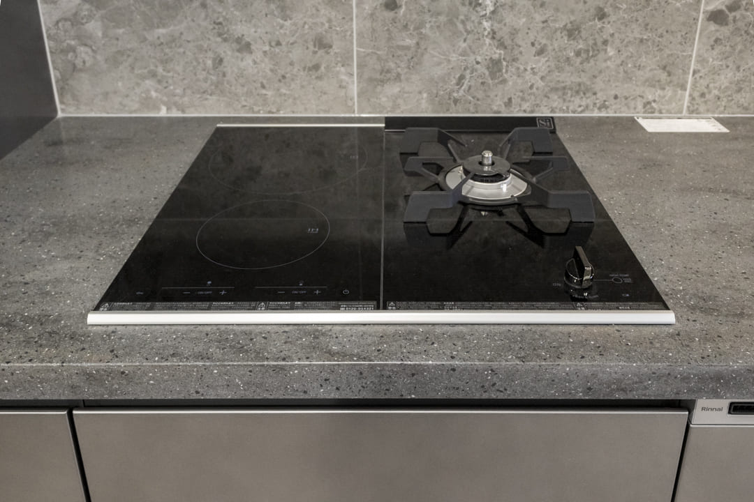 2口のIHクッキングヒーターと1口のガスコンロを組み合わせた仕様を採用。お手入れのしやすさや安全性に優れたIHと、火力調整がしやすいガス、それぞれの特長を活かしながら、調理内容に応じて使い分けが可能です。さらに食洗機も内蔵されており、日々の後片付けをスマートにサポートします。