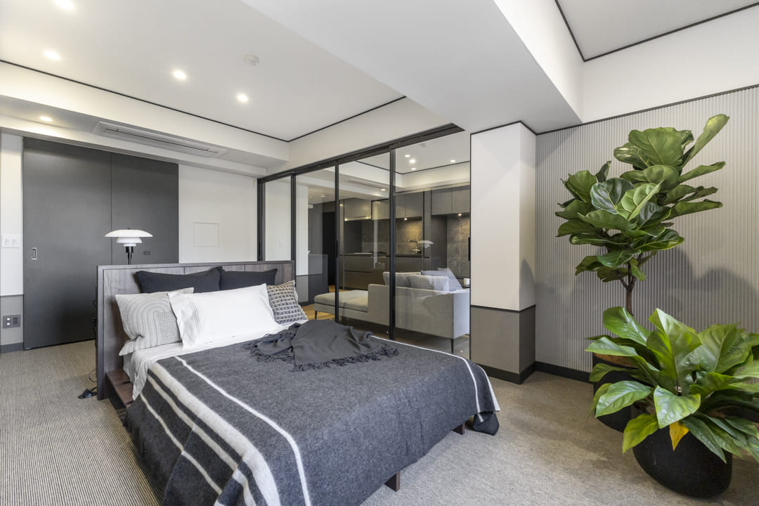 LDKと洗面室の双方に接続する動線も大きな魅力。居室を起点に水まわりへスムーズにアクセスでき、身支度や就寝前後の動きが快適です。主寝室を住まいの中心に据えた設計は、ラグジュアリーホテルのスイートルームのような、上質で贅沢な日常を演出してくれます。