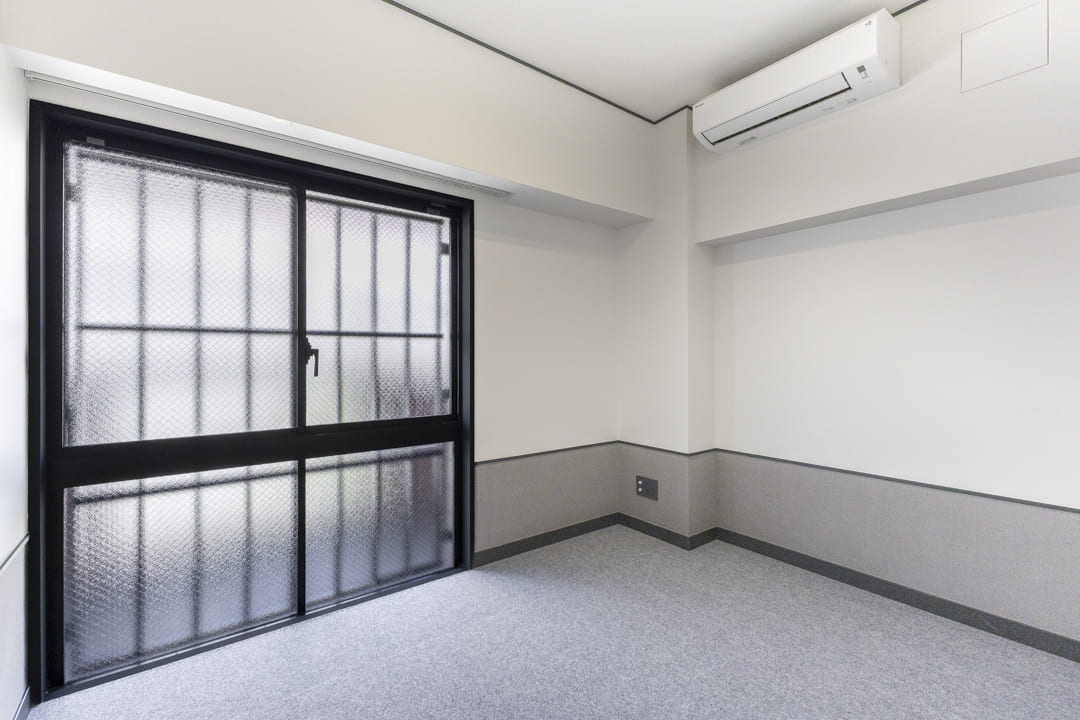 約4.2帖の洋室2は、廊下に面したプライベート性の高い空間。コンパクトながらも落ち着いて過ごせるため、ワークスペースや趣味部屋としてもおすすめです。インターホンが設置されていて、急な来客時にリビングまで行く手間がかからないのも嬉しいポイントです。