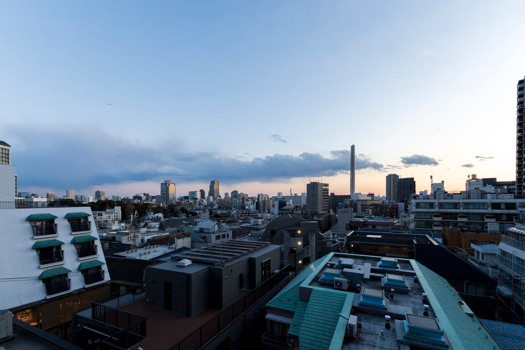 リビングと洋室に面した約9.45㎡のバルコニー。南向きで陽当り良好です。ビルがひしめく渋谷エリアでありながら、開放感のある眺望が魅力的。贅沢なロケーションです。