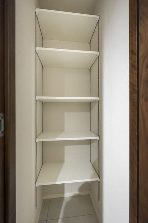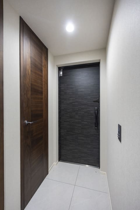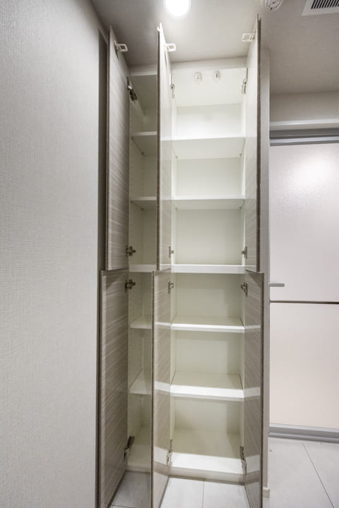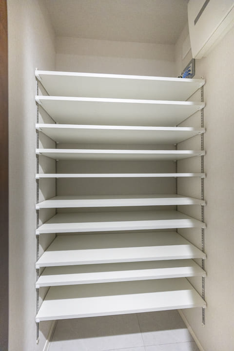 スタイリッシュな玄関にはシューズインクローゼットが造られています。中には可動棚が設置されているので、持っている靴に合わせて調節が可能。また、廊下には物入れが造られており、生活感が出がちな小物も収納できますよ。