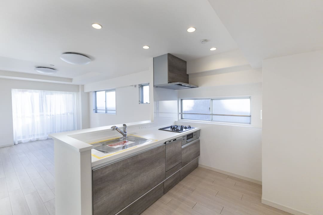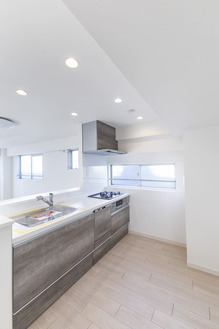 調理の際に手軽においしい水を使用できる浄水器一体型水栓や、後片付けの捗る食洗機付き。グリル付3口ガスコンロも付いていて、忙しい家事時間をサポートしてくれます。