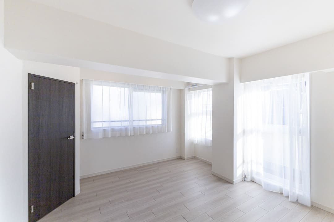 約7.6帖の洋室1。ゆとりある広さで主寝室にぴったりです。南東2面採光により、明るい光と心地よい風が届き、くつろぎのひとときを過ごすことができます。