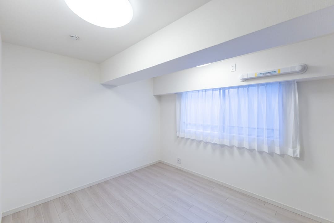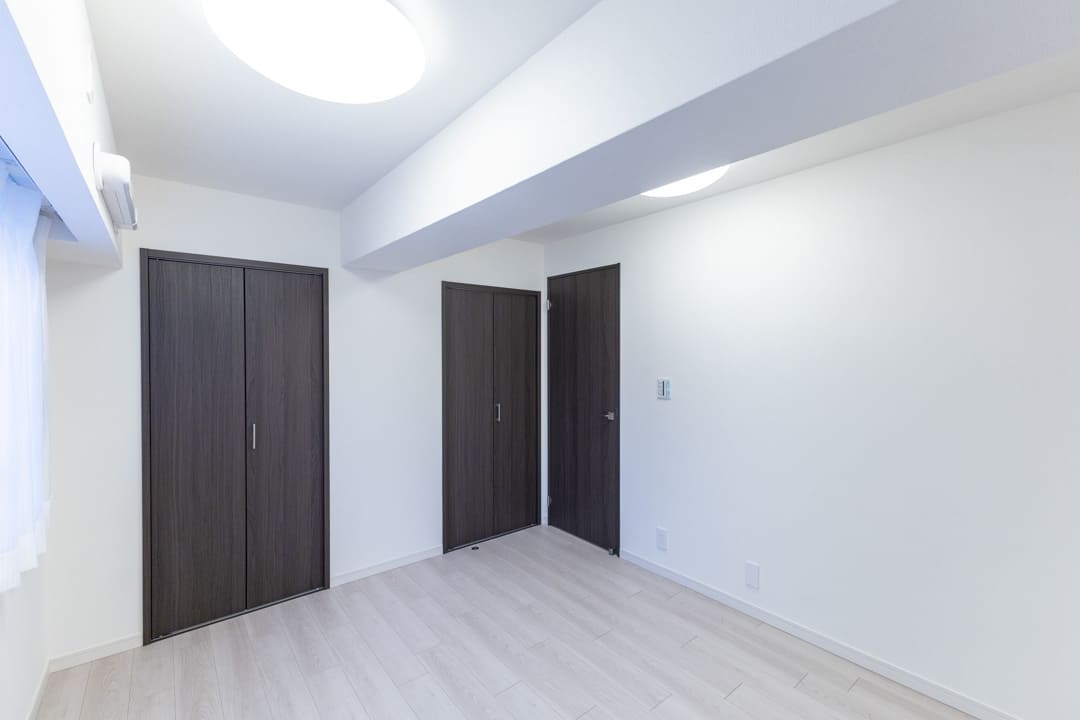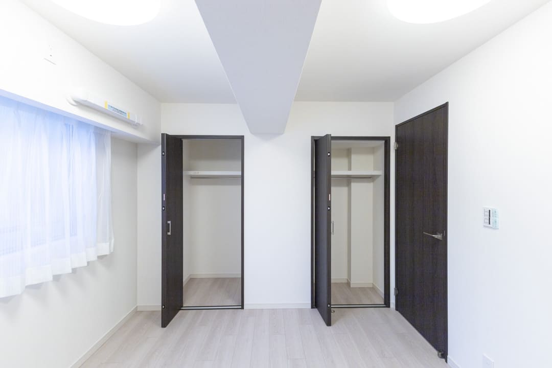 約6.6帖の洋室2。廊下に面していてプライベート性の高い空間です。東向きの窓からやわらかな光が入り、心地よい時間を過ごせそう。クローゼットを2つ備え、豊富な収納も魅力です。寝室としてはもちろん、ワークスペースや趣味部屋としても使い勝手の良いお部屋です。