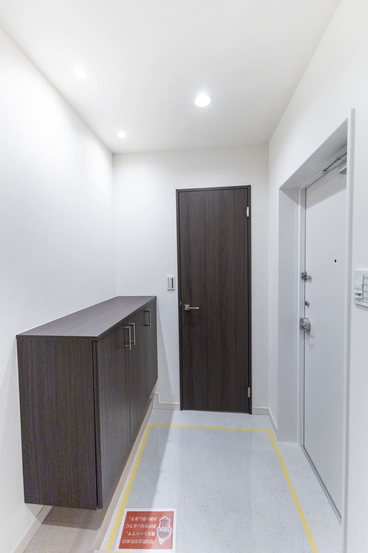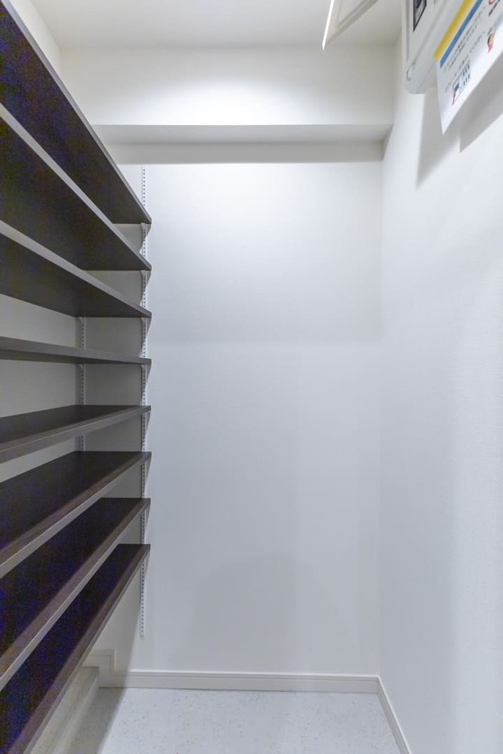 人感センサー搭載でいつも明るく出迎えてくれる玄関。荷物で両手が塞がっている時や夜遅く帰宅した時に、スイッチを探す手間がかからず助かります。カウンタータイプのシューズボックスに加え、SIC(シューズインクローゼット)も完備。靴はもちろん、雨具なども収納でき、すっきりとした玄関をキープできます。