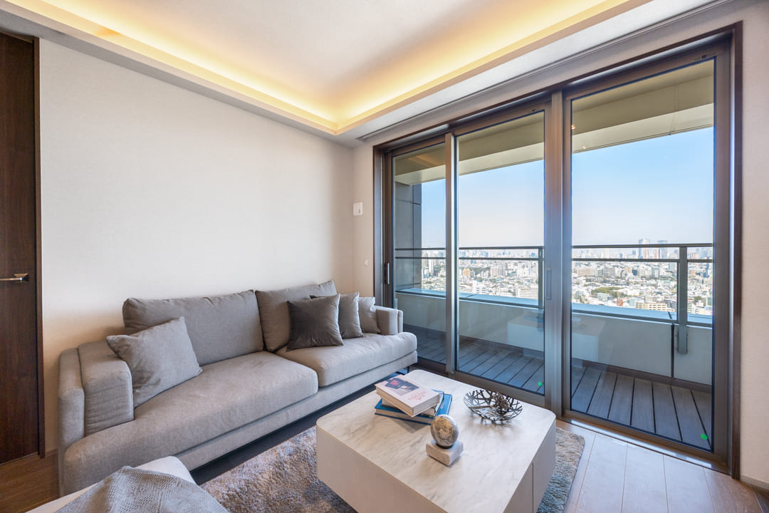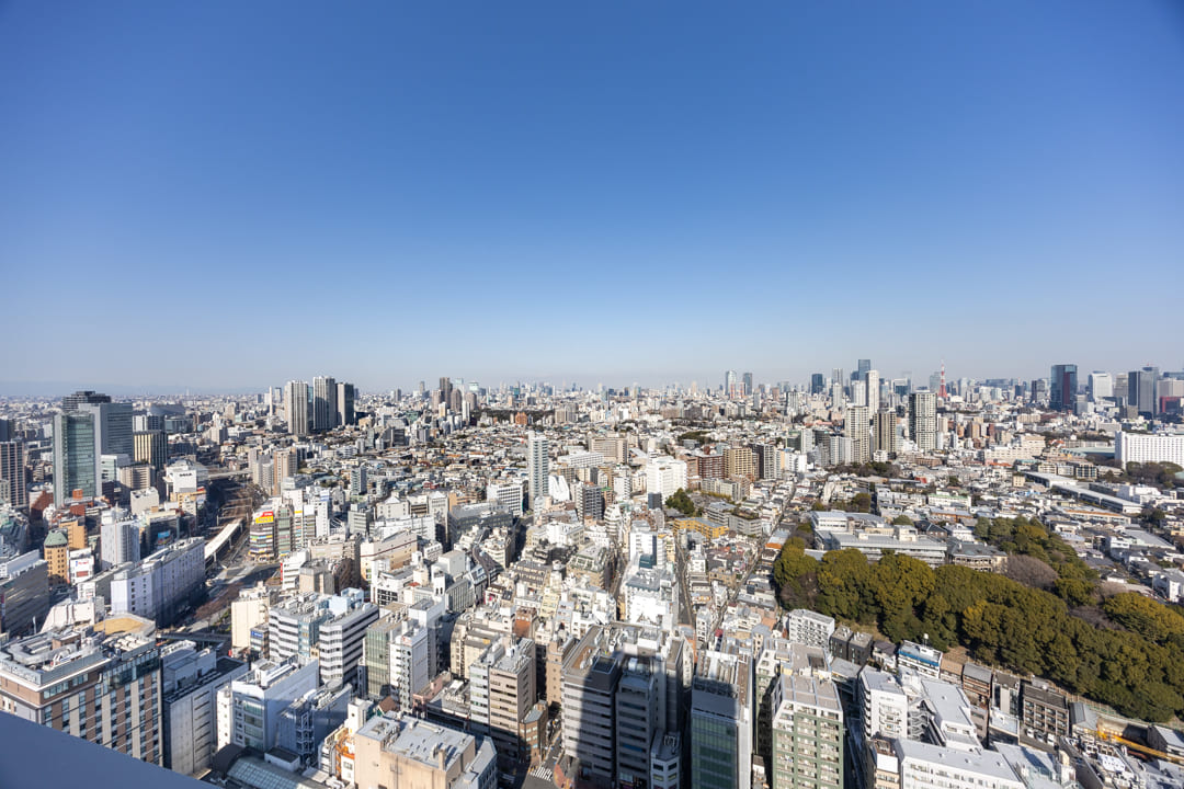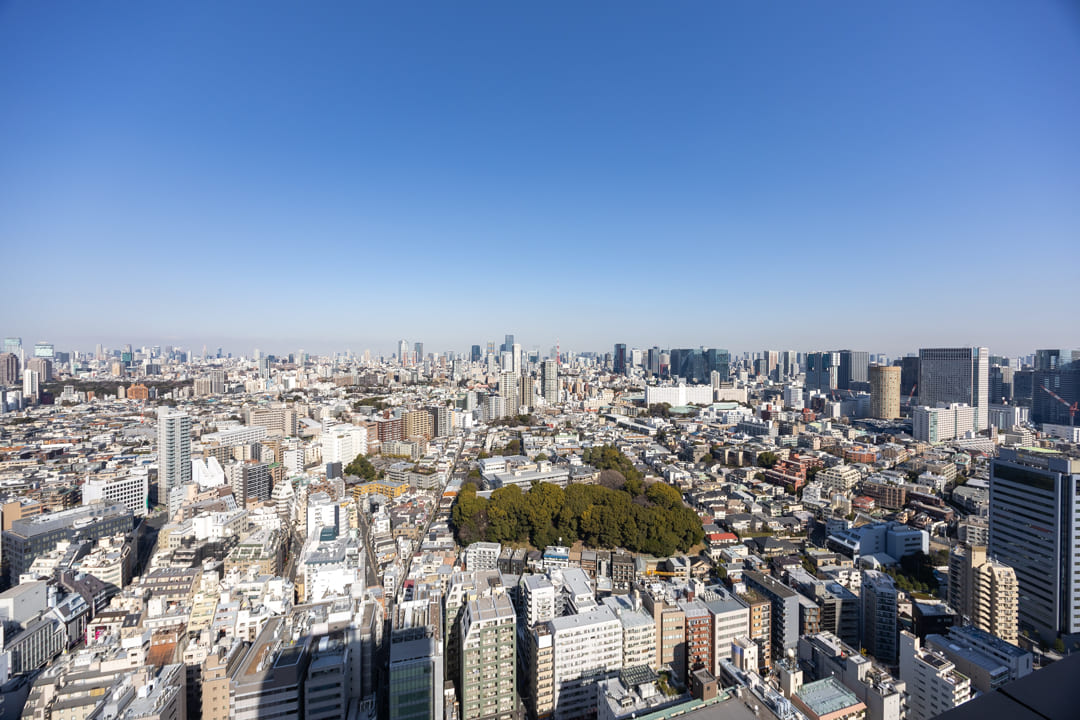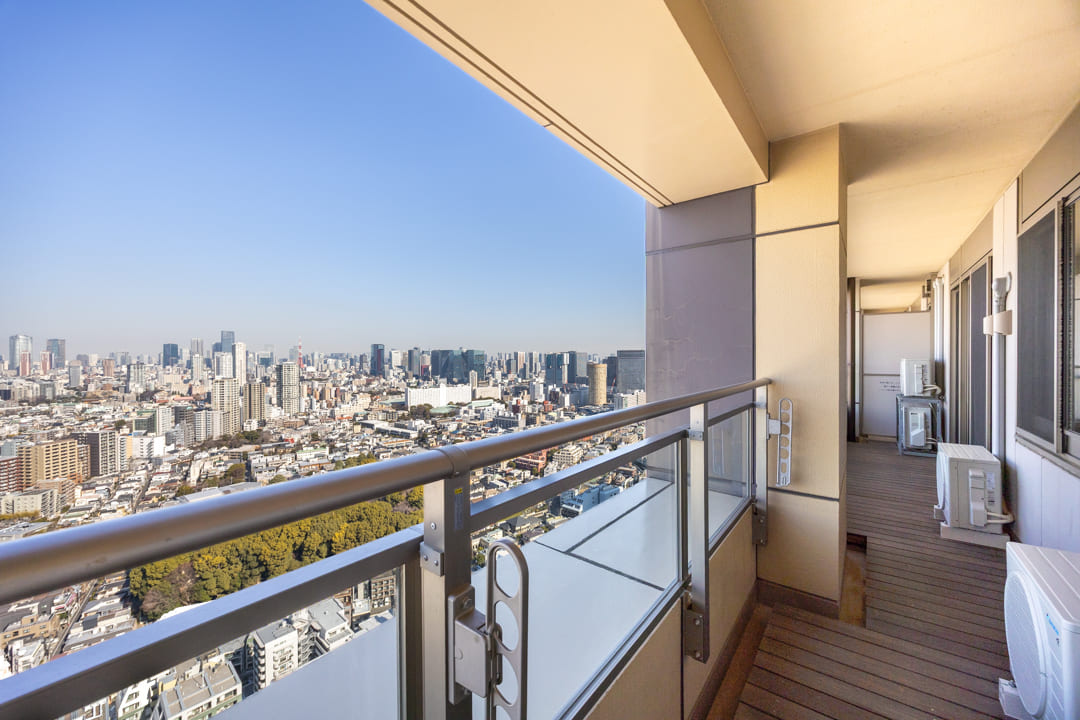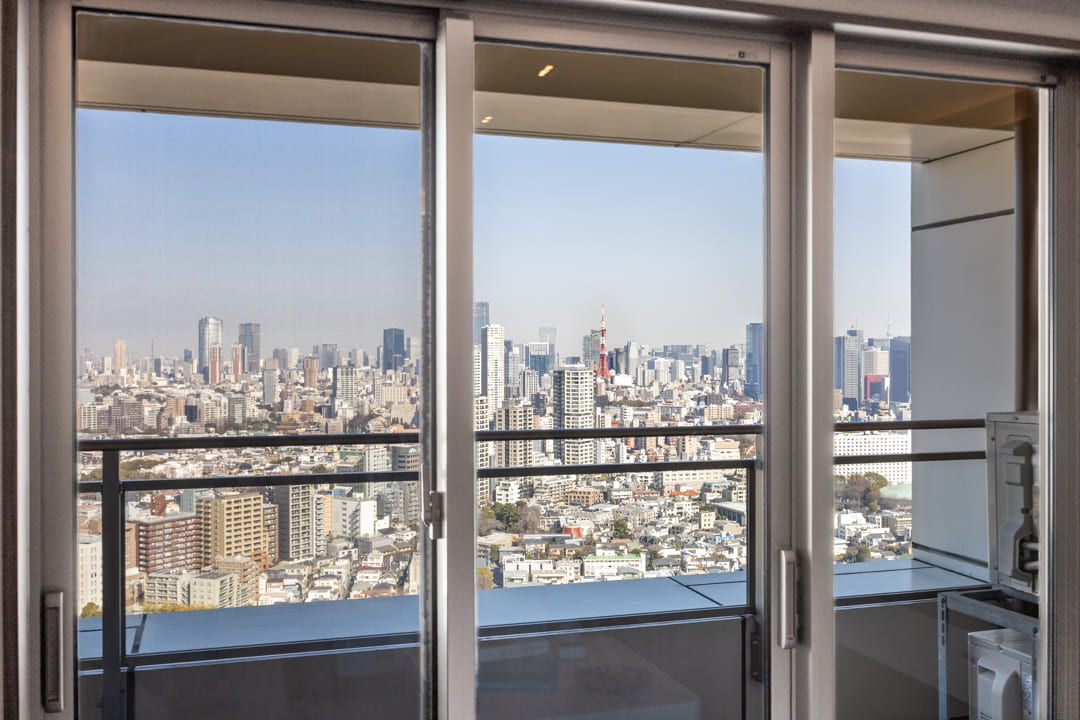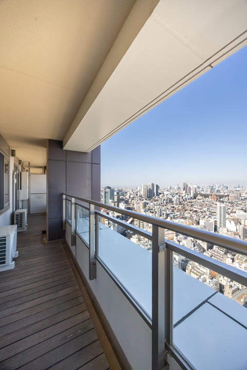 3部屋に跨るワイドスパンバルコニー。13.77㎡のゆとりある広さを確保しています。41階部分につき眺望も良好で、遠くまで視線が抜ける開放的な空間。広がる青空を望みながら、穏やかなひとときをお過ごしいただけます。北東側には東京タワーも望め、都心ならではの景色が日常を彩ります。