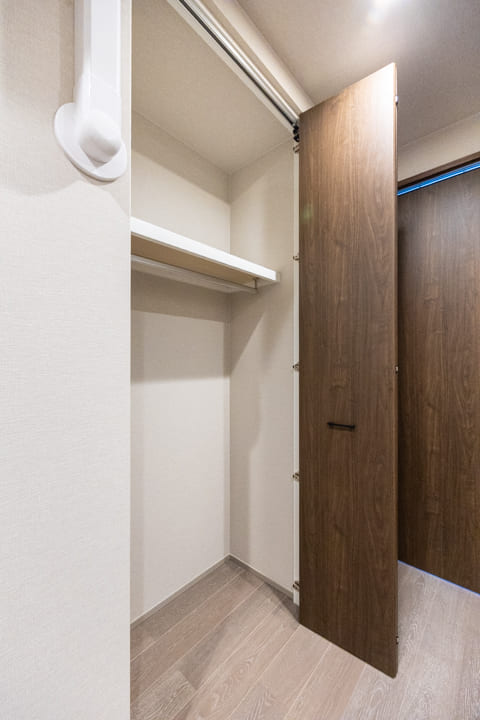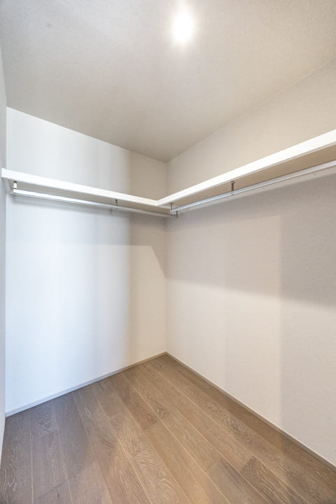 WIC(ウォークインクローゼット)完備で収納力◎。衣類はもちろん、トランクケースやゴルフバッグといった大きな荷物も収納でき、居室空間を広々と使うことができます。