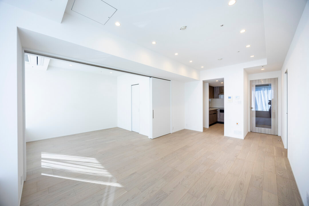 リビングダイニングと隣接している洋室2と繋げてより広々と過ごすことも可能。床にドアレールがないので見た目もすっきりとした印象で、レールにホコリがたまる心配もないので衛生的にも◎です。ライフスタイルに合わせて様々な使い方ができる便利な間取りです。