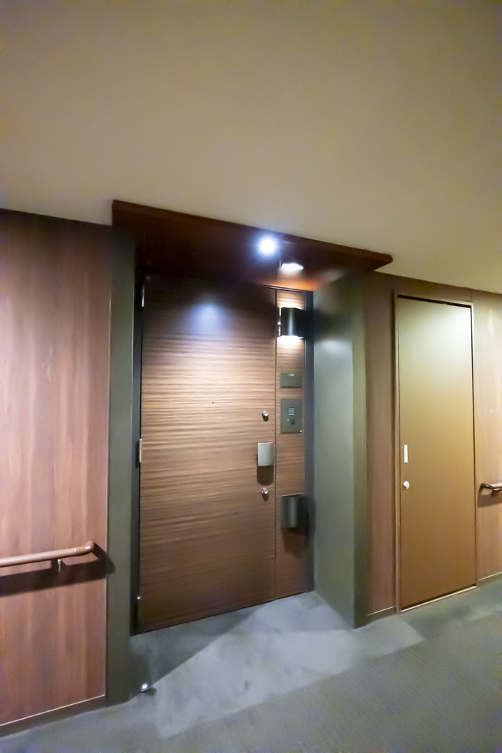 玄関照明は自動センサーへの切り替えが可能。帰宅時に明るい空間でお出迎えしてくれます。電気の消し忘れも防げますね。