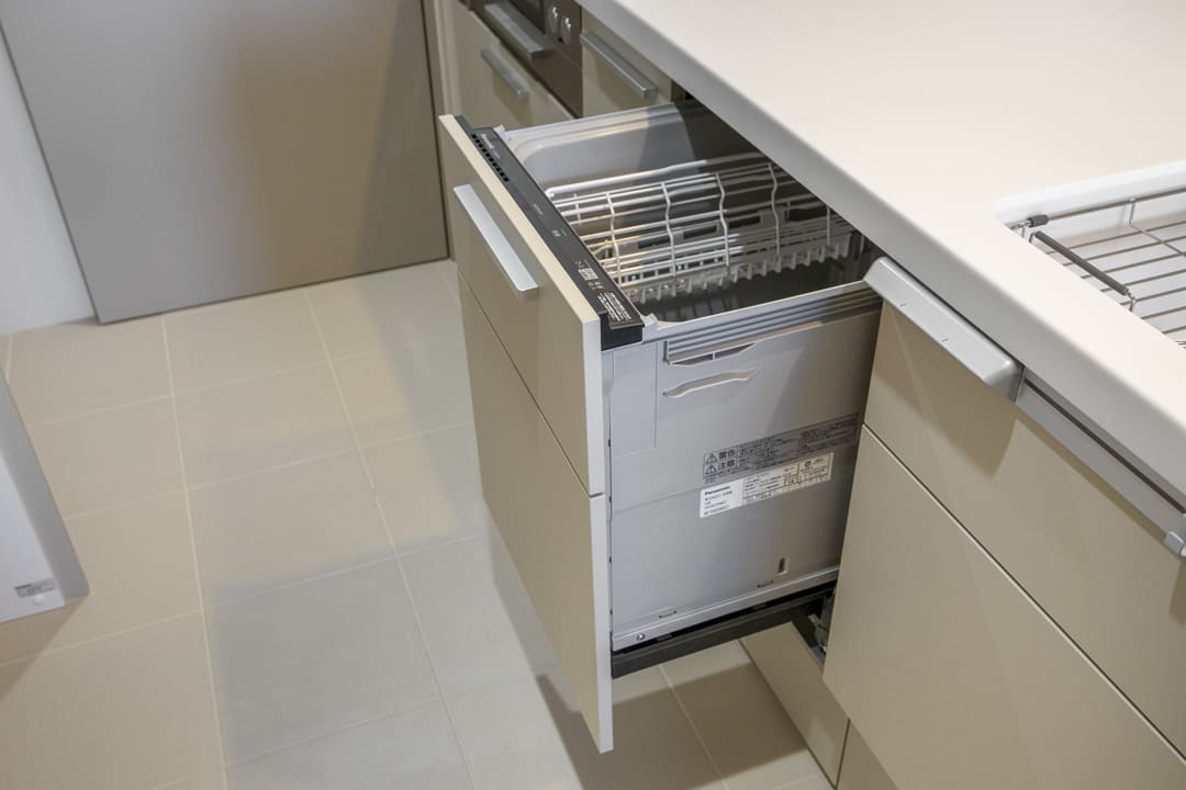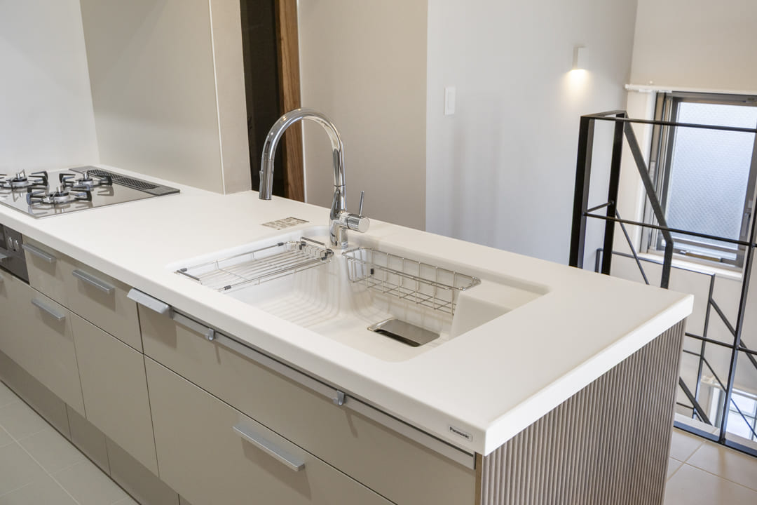3口コンロ、グリル、食洗機付きと設備面も充実しています。シンクも広々としているので野菜などが洗いやすそうですよ。