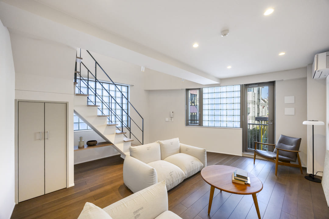 周辺は閑静な住宅街のため、落ち着いた生活が叶います。コンビニやスーパーなどの生活利便施設も揃っています。お部屋はメゾネットタイプの2SLDK。グレートーンでまとめられた内装は、上質で洗練された雰囲気を演出しています。内廊下にはアイアンブラックを採用し、空間に程よいアクセントをプラス。メゾネットならではの開放感と心地よさを感じていただける住まいです。