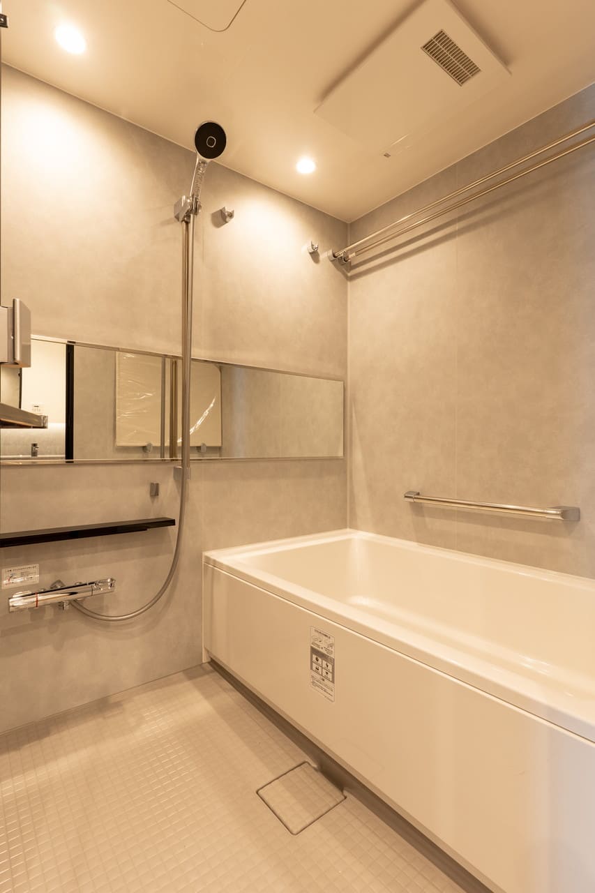 グレートーンでスタイリッシュな印象のLIXIL製のバスルームです。お風呂にゆっくり浸かるのが好きという方に嬉しい追い焚き機能を搭載。家族の入浴時間がずれてしまっても安心です。また、浴室乾燥機付きのため雨の日の洗濯物にも困りません。