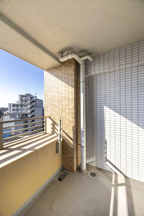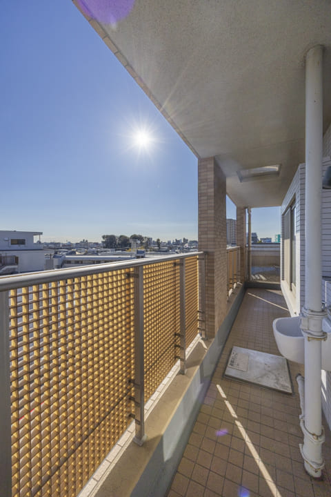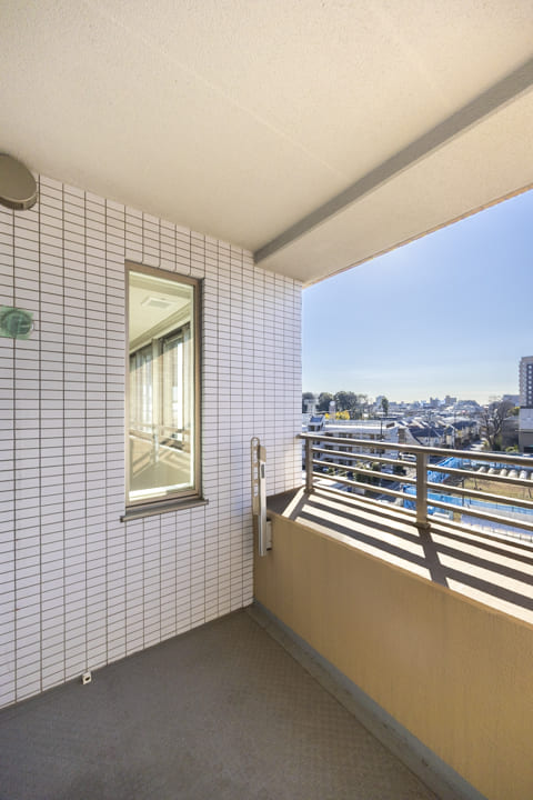 南向きで日当たり良好なL字のバルコニーです。奥行きがあるスペースには、チェアなどが置けるので、ほっと一息つくのも◎。