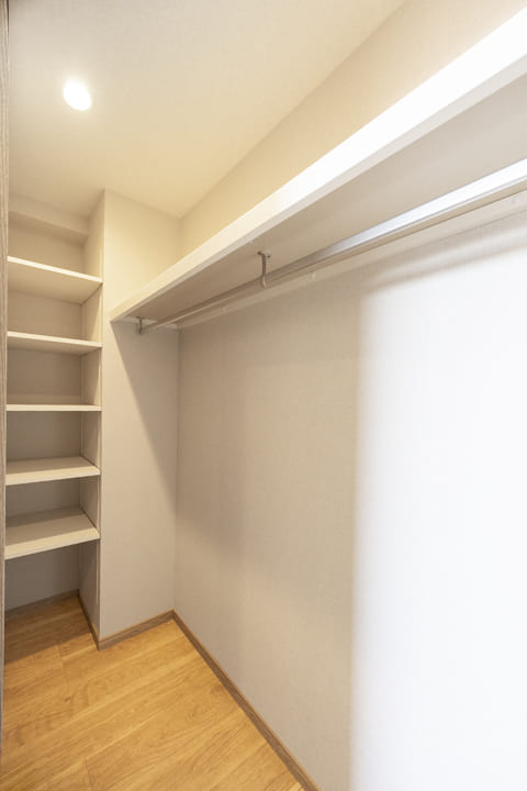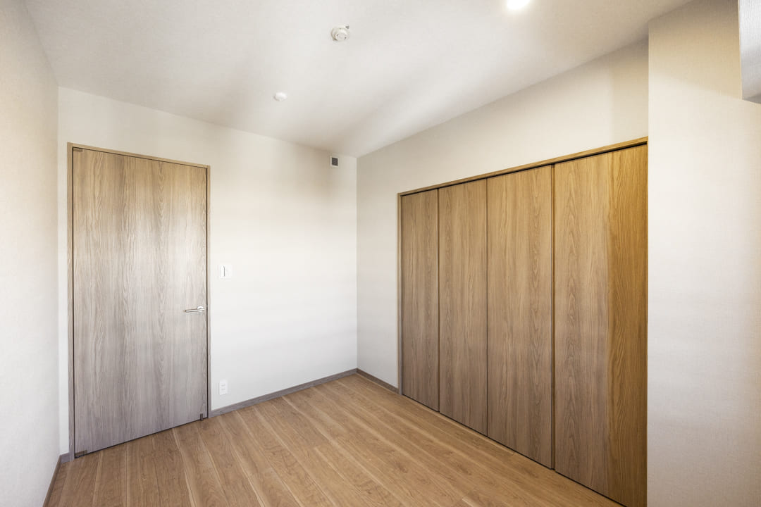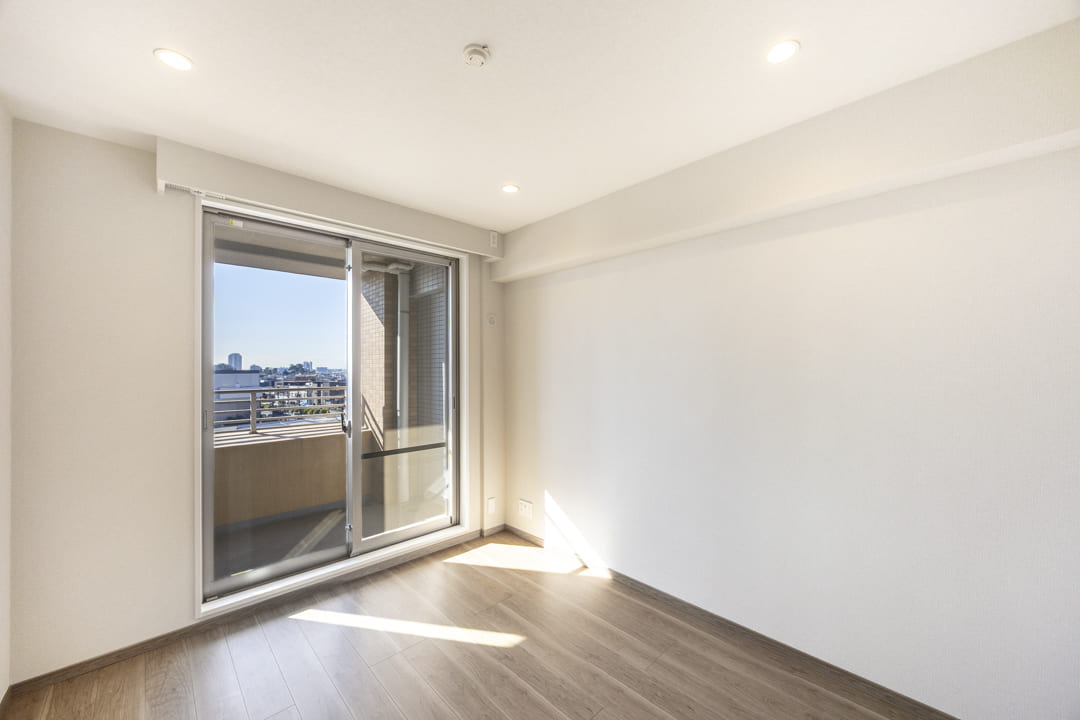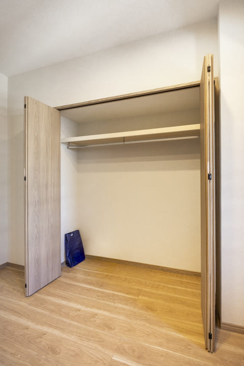 リビングダイニングに隣接している約6.0帖の洋室2です。奥行きがあるクローゼットには可動棚が付いているので小物なども収納しやすくなっています。また、南側の窓からはバルコニーにアクセスができ、ちょっとして気分転換にも◎。