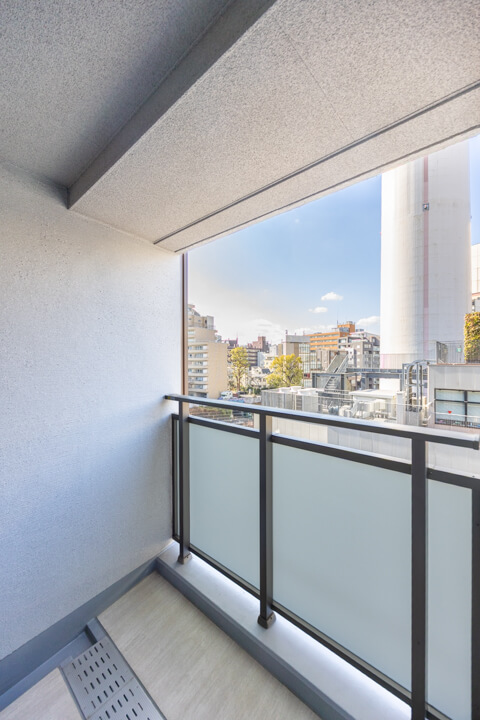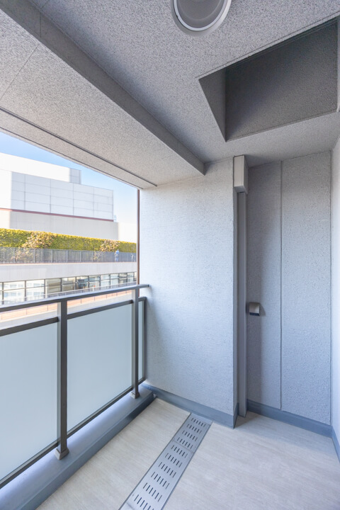 バルコニーはキッチンと洋室(約5.0帖)の2ヵ所に設置されています。洋室側のバルコニーは約4.74㎡、キッチン側のバルコニーは約3.94㎡の広さです。ややコンパクトなサイズ感ですが、どちらも見晴らしが良く開放感があります。