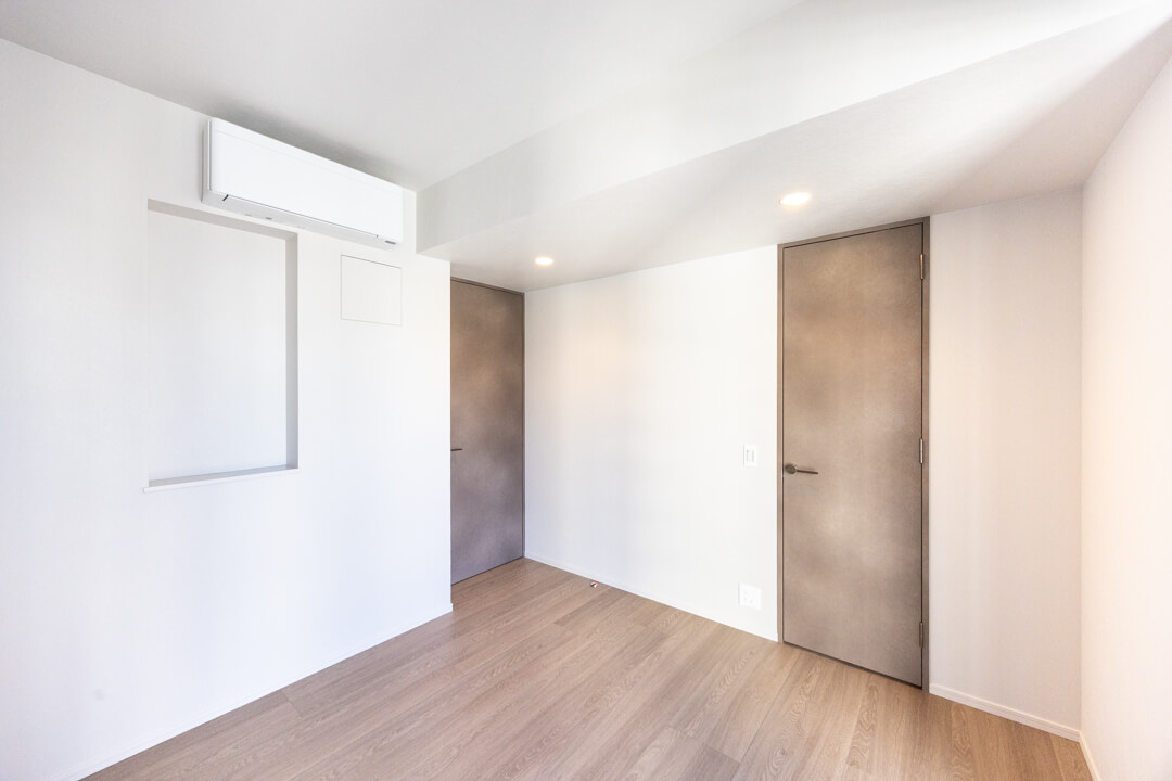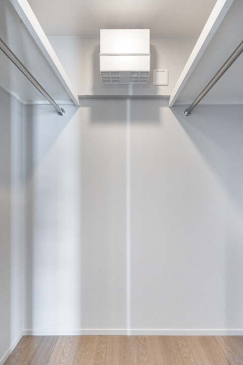 約7.1帖の洋室1。廊下に面した独立性の高い空間で、自分時間をゆっくりと過ごせます。朝のやさしい光が感じられる北東向き。3方向にハンガーパイプが付いたWIC(ウォークインクローゼット)付きで洋服がたくさん掛けられます。