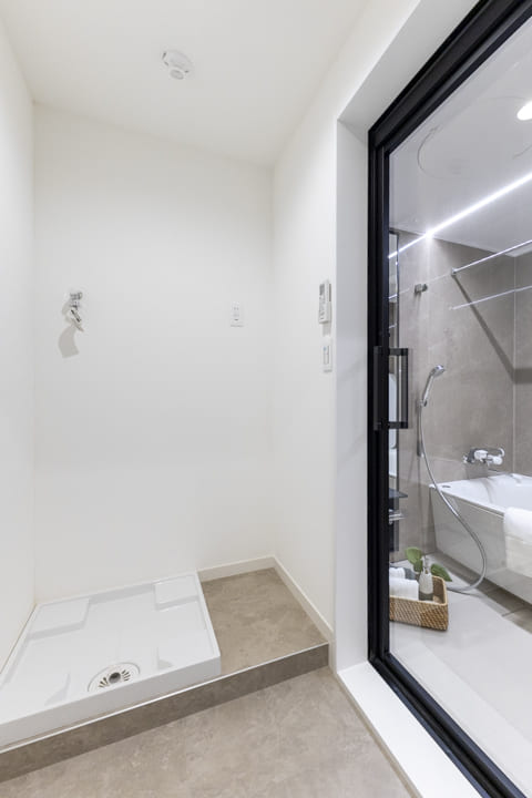 浴室の外には、脱衣スペースを兼ねたランドリールームを設置。脱いだ服をそのまま洗濯機に入れることができ、生活動線も良好です。