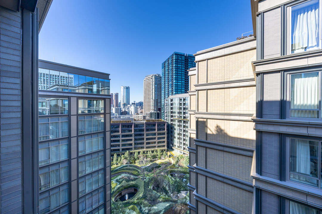 東京メトロ南北線・都営大江戸線「麻布十番」駅から徒歩7分。今回ご紹介する物件は2025年に竣工の「三田ガーデンヒルズパークマンション棟」。敷地内の全棟の中でも最上位グレードに位置づけられたパークマンション棟は、帝国ホテルと提携したコンシェルジュサービスが受けられます。お部屋は12階部、約109㎡の3LDK。高級感漂うラグジュアリーな内装で、バルコニーからは中庭の緑が望めます。豊富な収納スペース、全居室に床暖房、2ボウルの洗面化粧台、ジェットバス付の浴室など、ホテルのような安らぎを得られる特別感のある住戸です。
