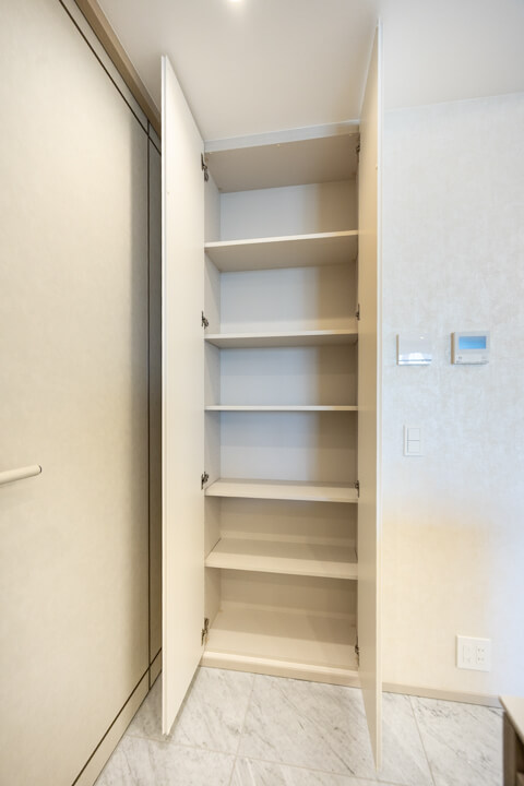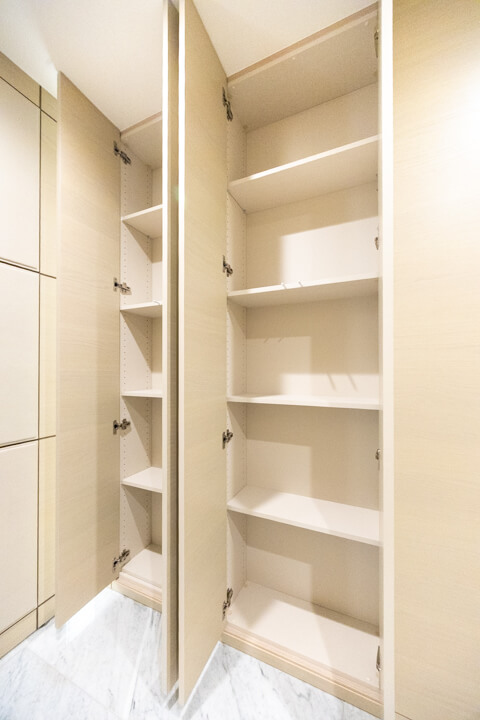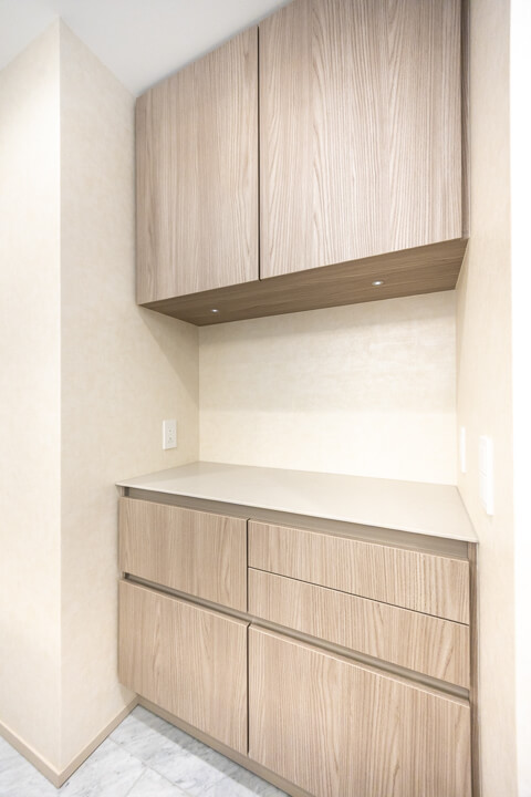 玄関物入の奥にはバトラースペースがあり、クリーニングや宅配物の受け取り、ゴミ出し等が可能。パークマンション棟の入居者様限定サービスで、快適な毎日をサポートしてくれます。