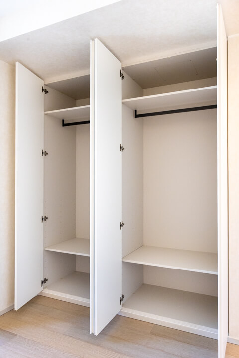 約6.3帖の洋室2。廊下に面した独立性の高い空間で、自分時間をゆっくりと過ごせます。こちらのお部屋も床暖房付き。ワークスペースや趣味部屋として利用しても足元が冷えることなく足元からあたたかく過ごせますね。クローゼットも備わっています。