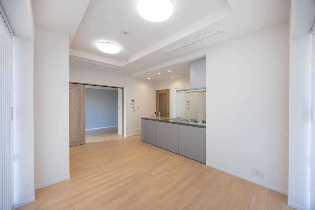 隣接する洋室2とは引き戸で仕切られていて、扉を開放すれば20帖超の一体空間として利用可能。普段は落ち着いたLDKとして、来客時や家族が集まるシーンでは開放感のある大空間として、ライフスタイルや用途に合わせた使い分けが叶います。