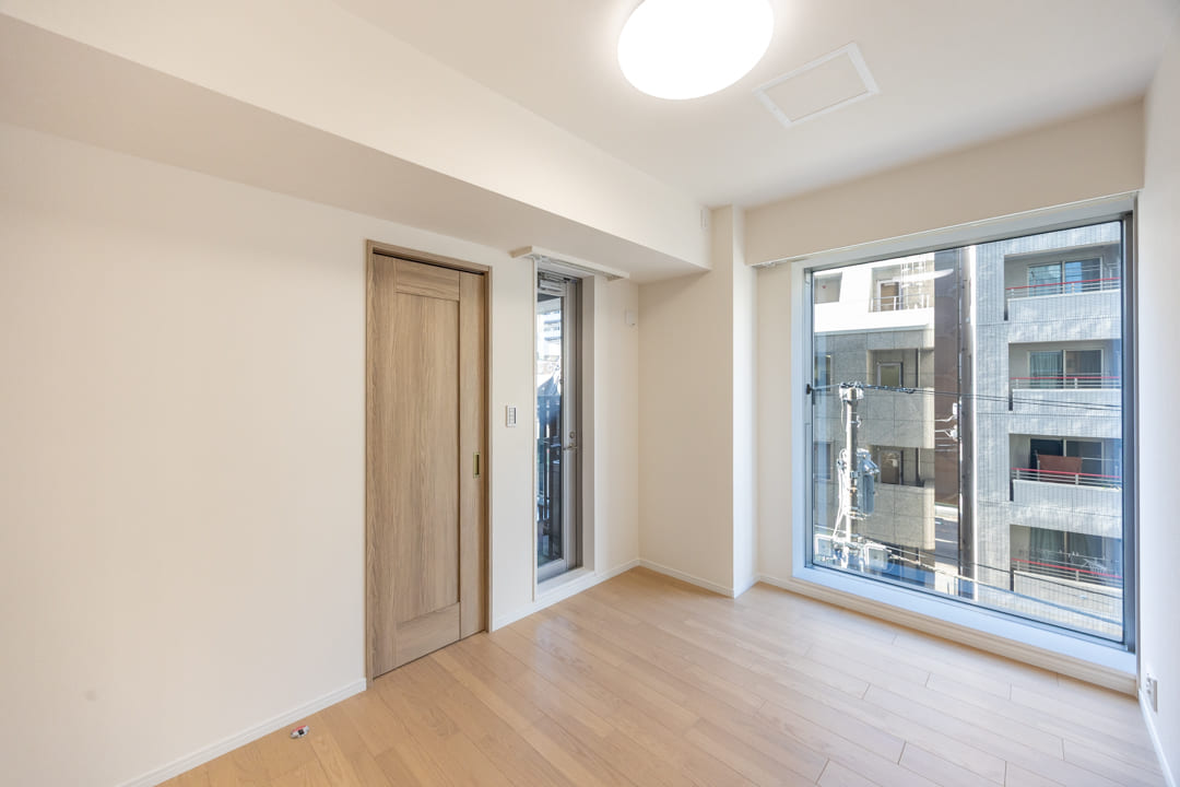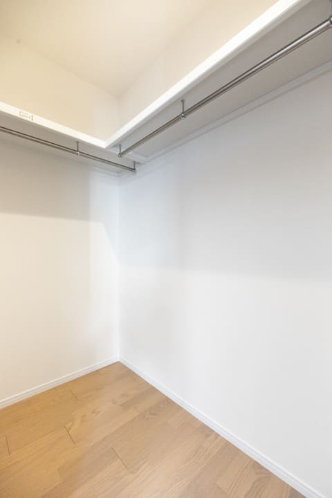 約6.0帖の洋室1。バルコニーに接続する2面窓で、明るく開放的な空間です。収納面では約1.5帖のWIC(ウォークインクローゼット)を完備。衣類はもちろん、トランクケースやゴルフバッグといった大きな荷物も収納でき、居室空間を有効活用できます。