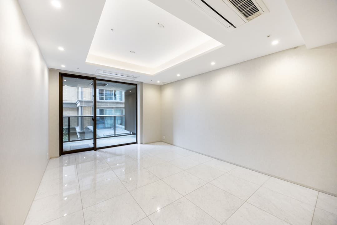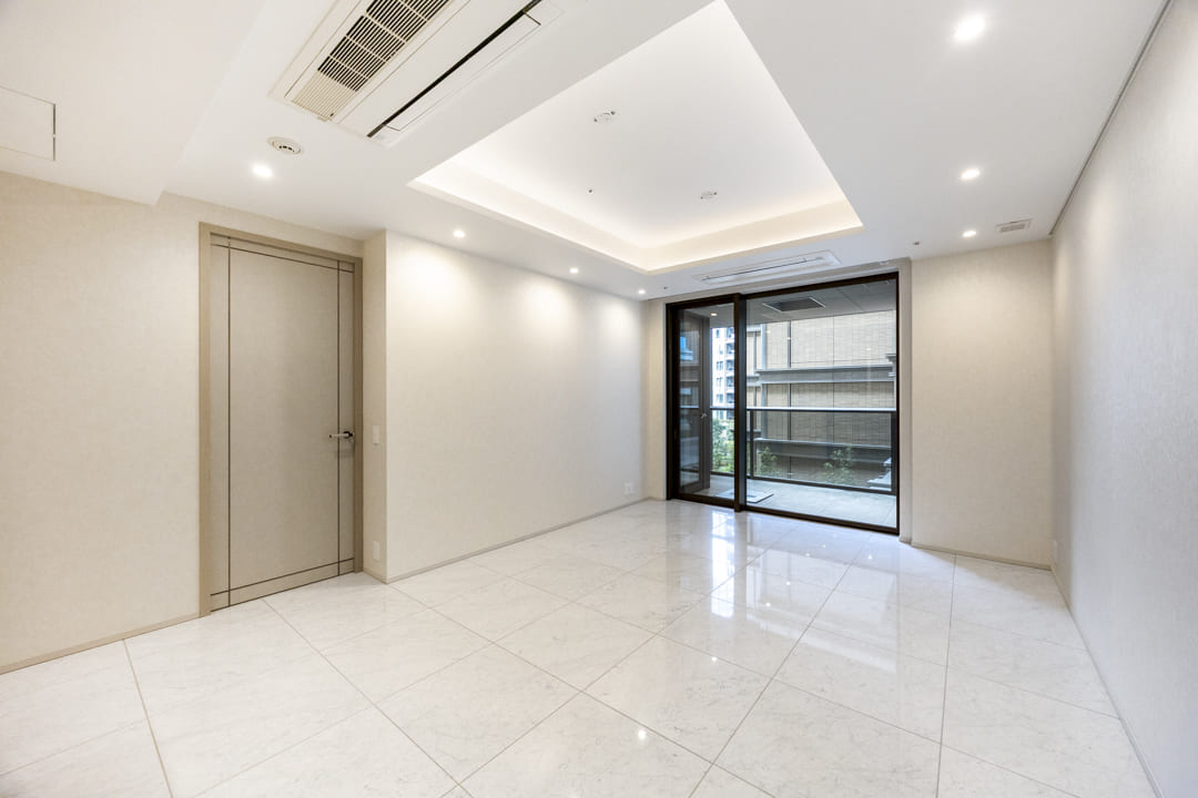 港区三田アドレス、「麻布十番」駅より徒歩7分の場所にそびえ立つ「三田ガーデンヒルズ」。総戸数1,002戸を誇る大規模レジデンスです。帝国ホテル提携のコンシェルジュや会員制ジム、プールなど、日常を格上げする多彩な共用施設を備えています。パークマンション棟限定のバトラーサービスにより、ワンランク上のきめ細やかなサポートを享受できる点も魅力です。今回ご紹介するお部屋は築後未入居の4階部分、専有面積80㎡の2LDK。約22.0帖のLDKは、光沢あるフロアと折り上げ天井、間接照明がホテルライクな上質空間を演出します。全居室に床暖房・ビルトインエアコンを備え、快適性にも配慮。フルオープンキッチンにはMiele製食洗機やオーブン、浄水器を完備し、機能性とデザイン性を両立しています。さらに、2ヶ所のバルコニーからは敷地内の緑と中庭を望み、都心にいながら穏やかな時間を楽しむことができます。