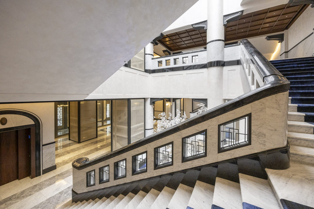 三井不動産レジデンシャル株式会社と三菱地所レジデンス株式会社による共同開発、大成建設株式会社施工の「三田ガーデンヒルズ」。旧通信省建造物の一部を保存・再生した、唯一無二のファサードデザインが印象的な総戸数1,002戸の大規模高級レジデンスです。ノースヒル棟・イーストヒル棟・パークマンション棟・ウエストヒル棟・サウスヒル棟の5棟が中庭を囲むように配置され、シングルからファミリーまで幅広いライフスタイルに応える多彩なプランを展開。会員制ジムやプール、ゴルフレンジ、サウンドスタジオ、カフェラウンジ、キッズルームなど、共用施設も充実しています。帝国ホテルと提携したコンシェルジュサービスが、日常に上質なホスピタリティをもたらします。さらに、パークマンション棟限定のバトラーサービスも利用可能です。