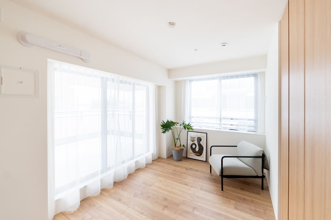 約4.1帖の洋室2は、書斎や趣味部屋・リモートワークなど色々な使い方ができそうなお部屋です。奥行きがあるクローゼット付きで、窓からは南東向きのバルコニーにアクセスができます。ちょっとした気分転換にも◎
