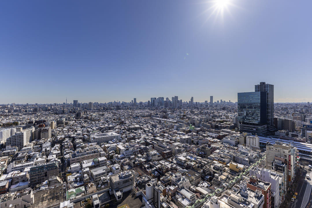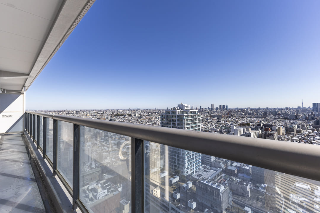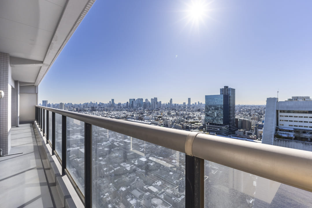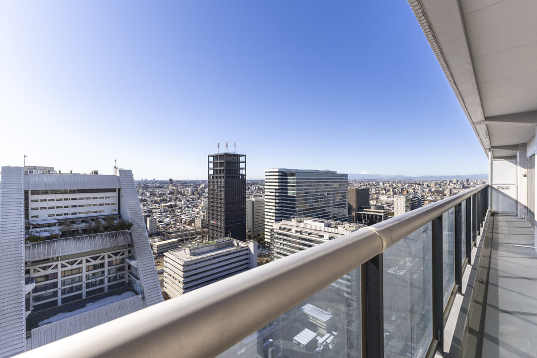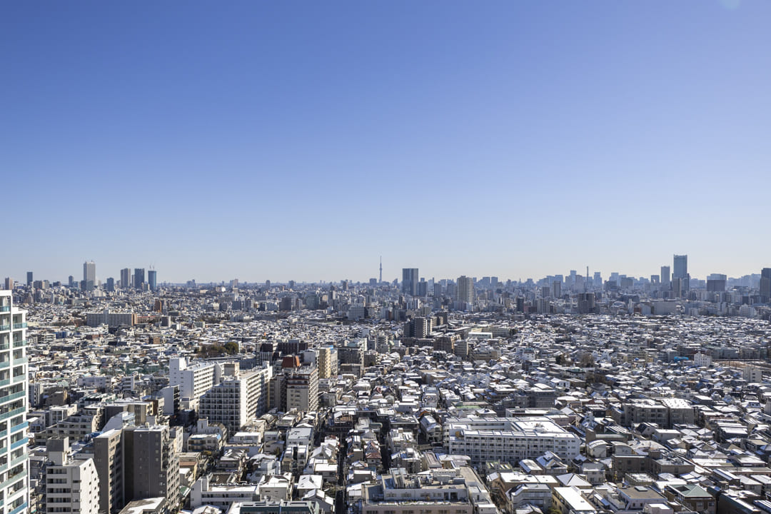 全居室に跨るワイドな2面バルコニーは、南・東向きで日当たり良好。最上階ならではの抜け感のある眺望が広がり、都心の街並みと広い空を一望できます。新宿副都心のビル群をはじめ、遠くまで見渡せるパノラマビューは、日常に特別感をもたらしてくれそうです。東側には東京スカイツリー、西側には富士山を望むこともでき(※天候による)、時間帯や季節によって表情を変える景色を楽しむことができます。開放感と贅沢な眺めを堪能できる、魅力的な屋外空間です。
