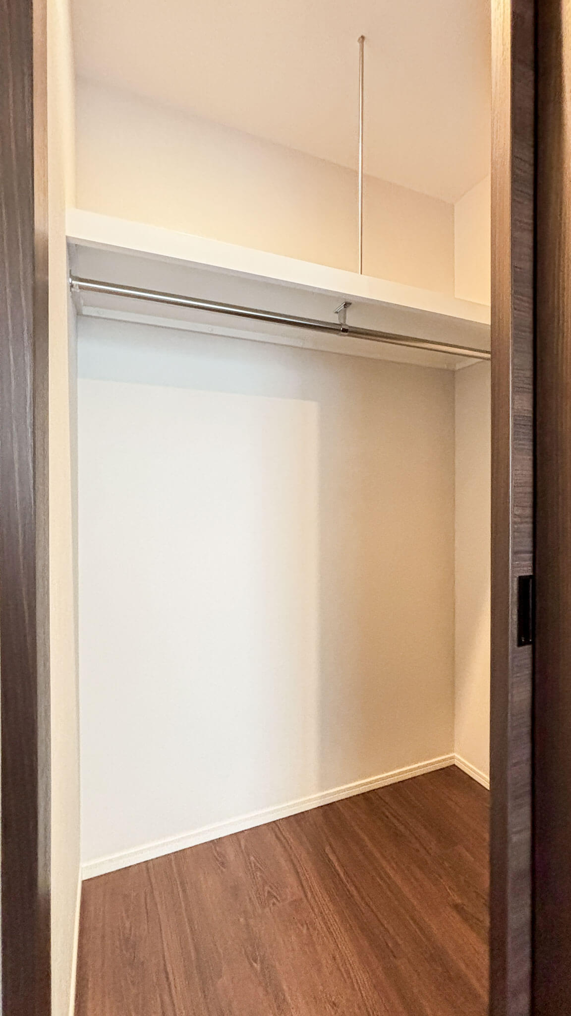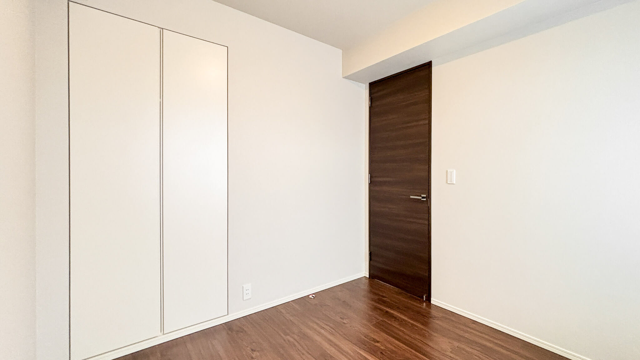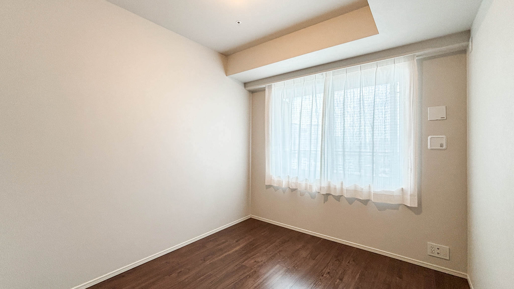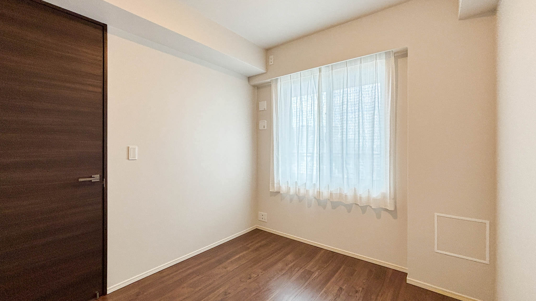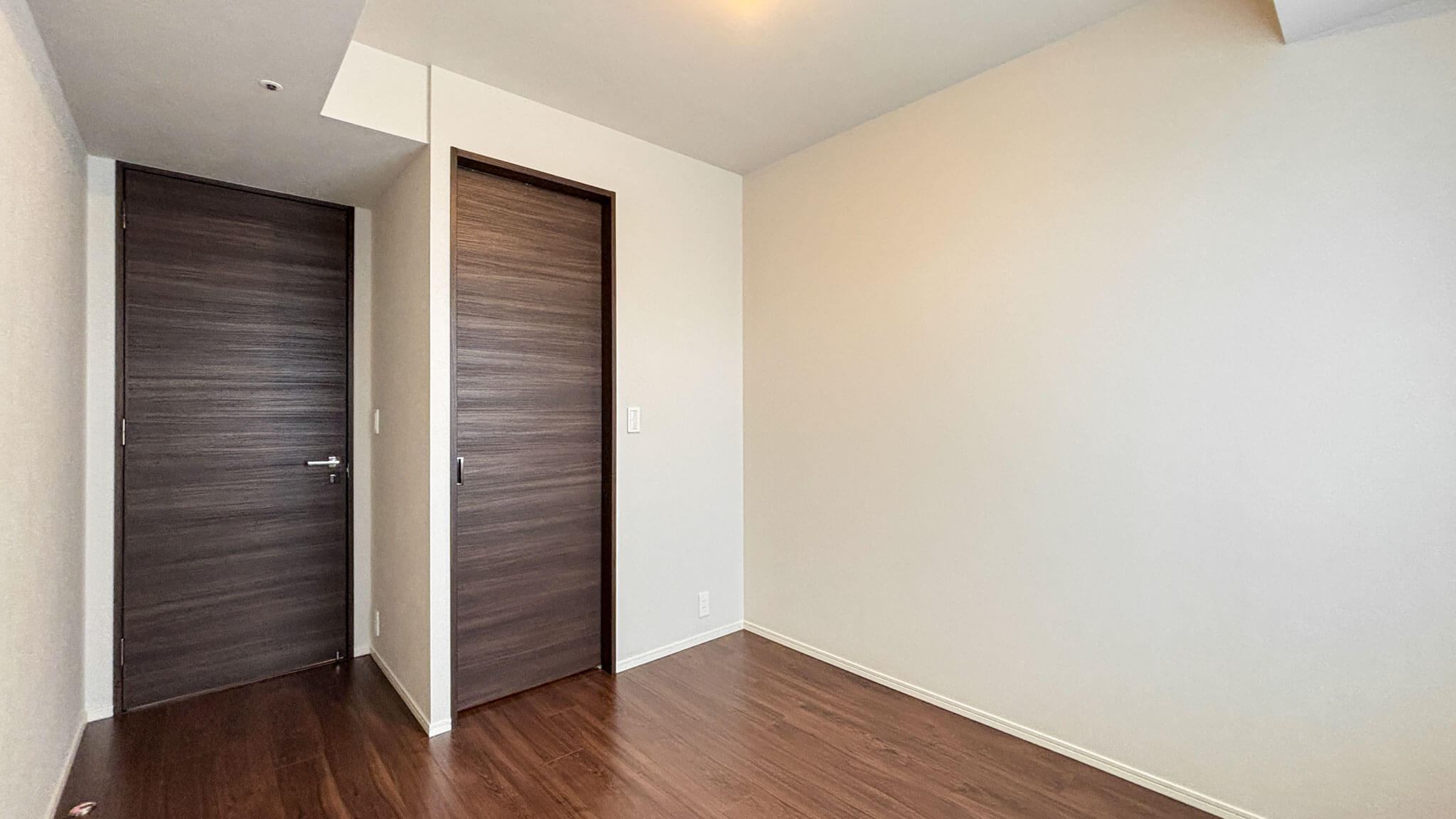 約6.0帖の洋室1。3つの洋室で一番広いお部屋です。廊下に面した独立性の高い空間で、プライバシー性の高い動線がポイント。リビング同様、朝の光が心地よい東向きで、気持ちの良い目覚めができそうですね。WIC(ウォークインクローゼット)も備わっています。