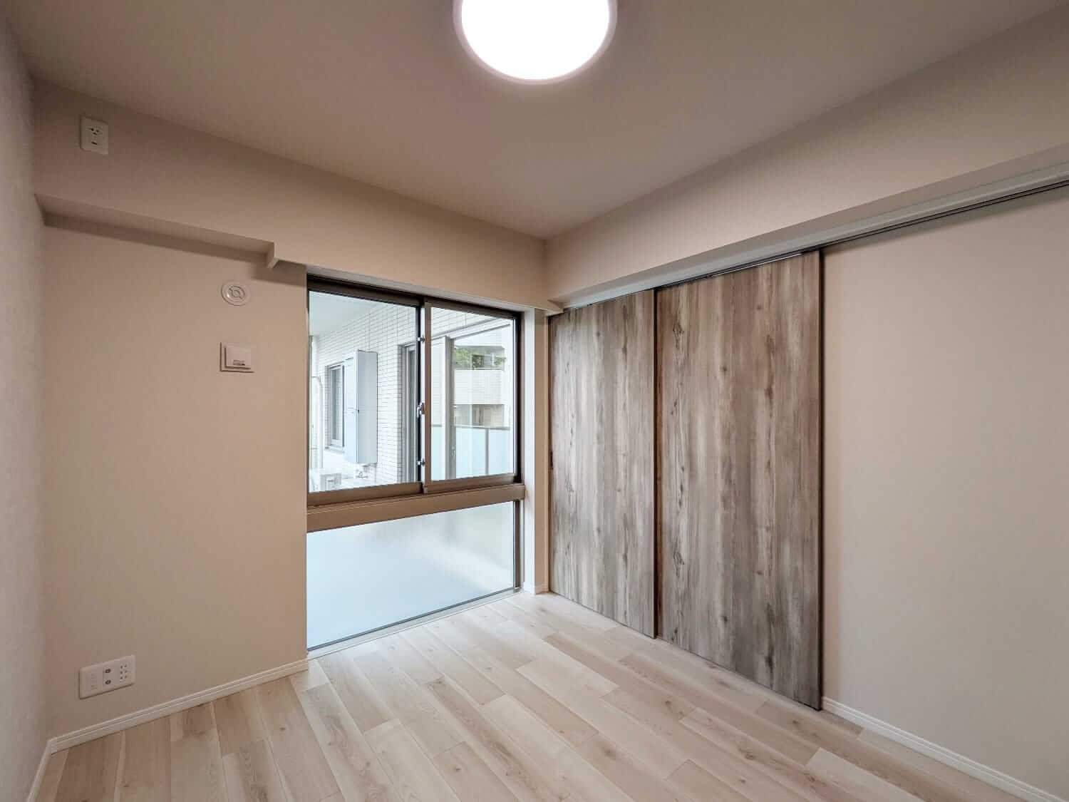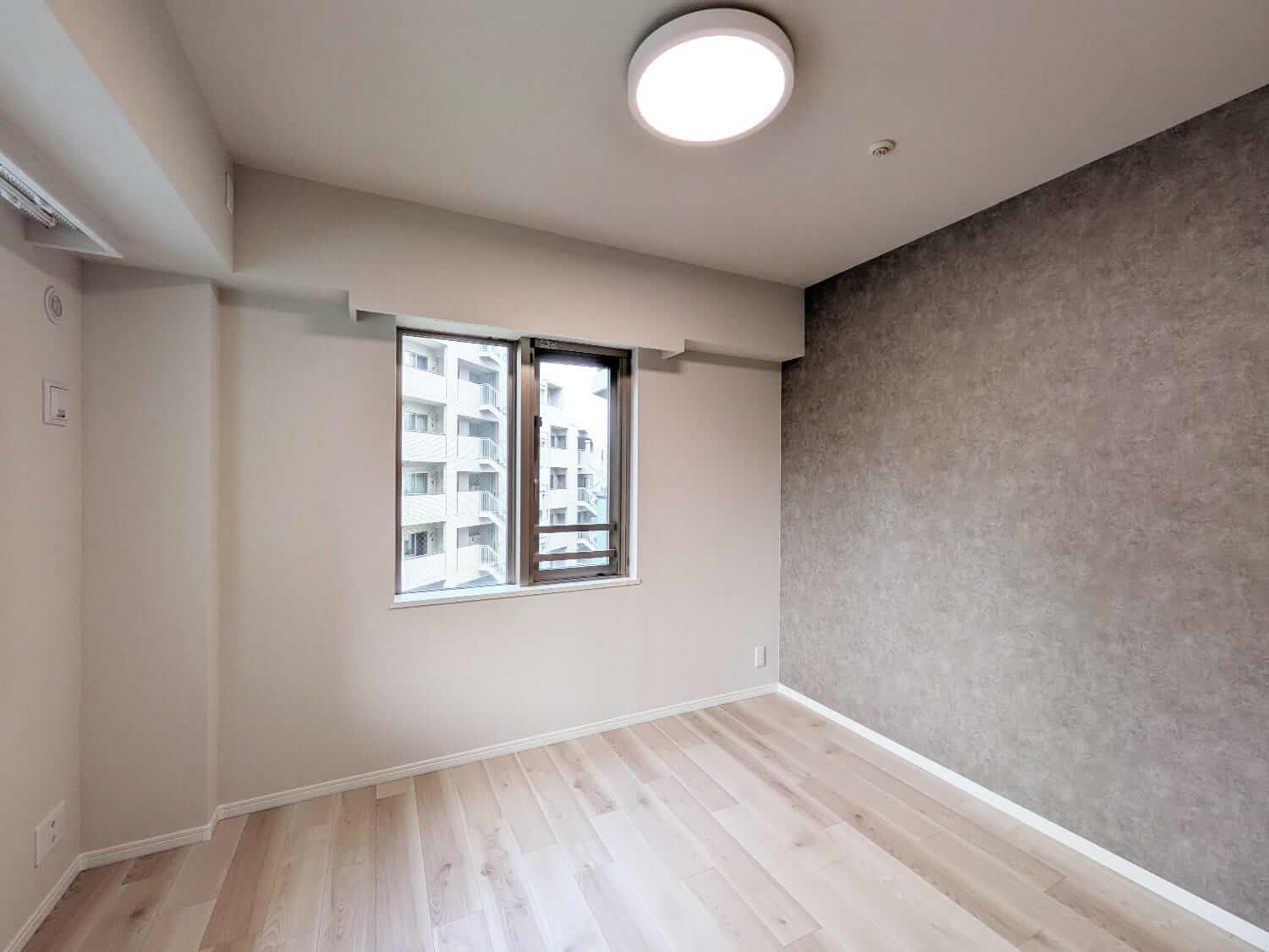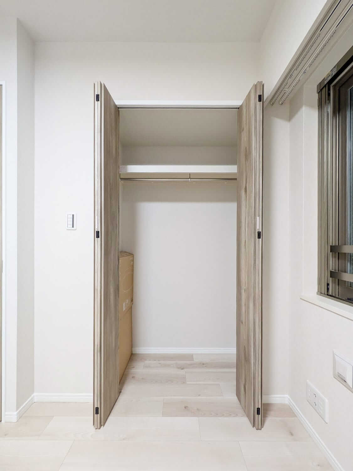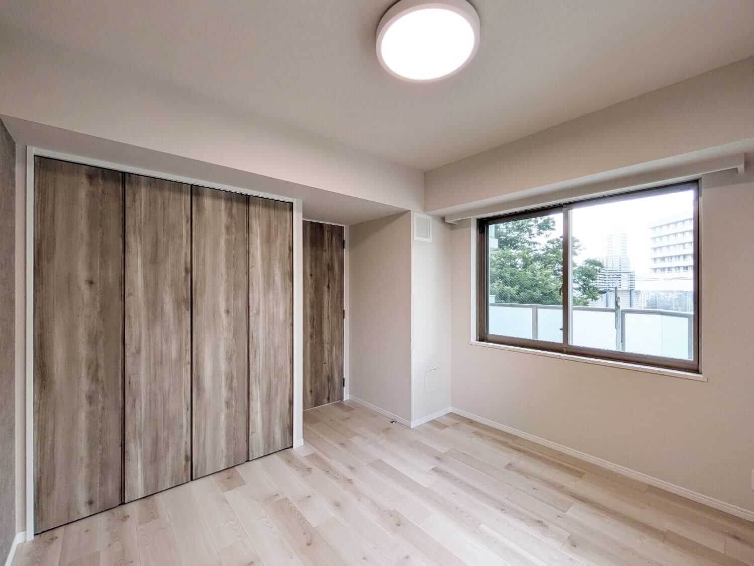 約5.0帖の洋室。リビングダイニングから直接出入りできる動線で、家族とのコミュニケーションが取りやすくなっています。窓はバルコニーに面していて、クローゼットは2つ備わっています。