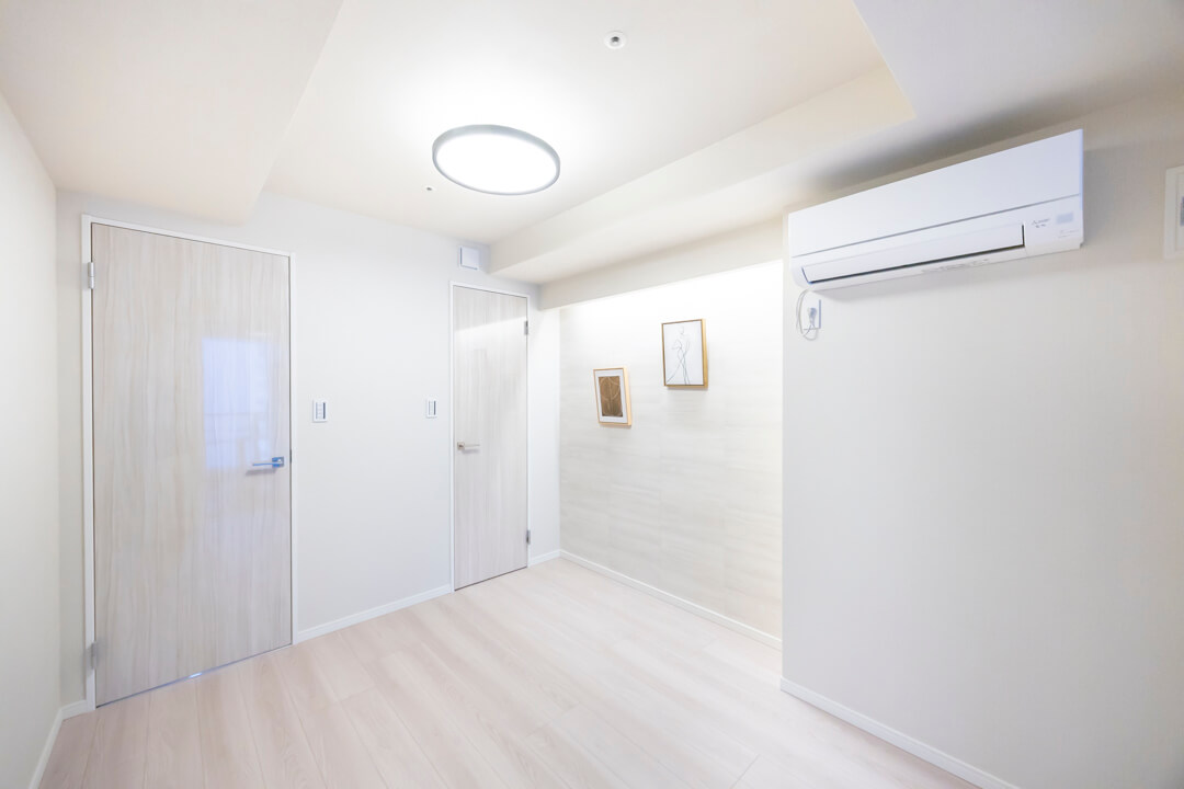 約6.0帖の洋室。廊下に面した独立性の高い空間で、自分時間をゆっくりと過ごせます。バルコニーも付いていて開放感も〇。WIC(ウォークインクローゼット)内には、引き出し収納も付いています。