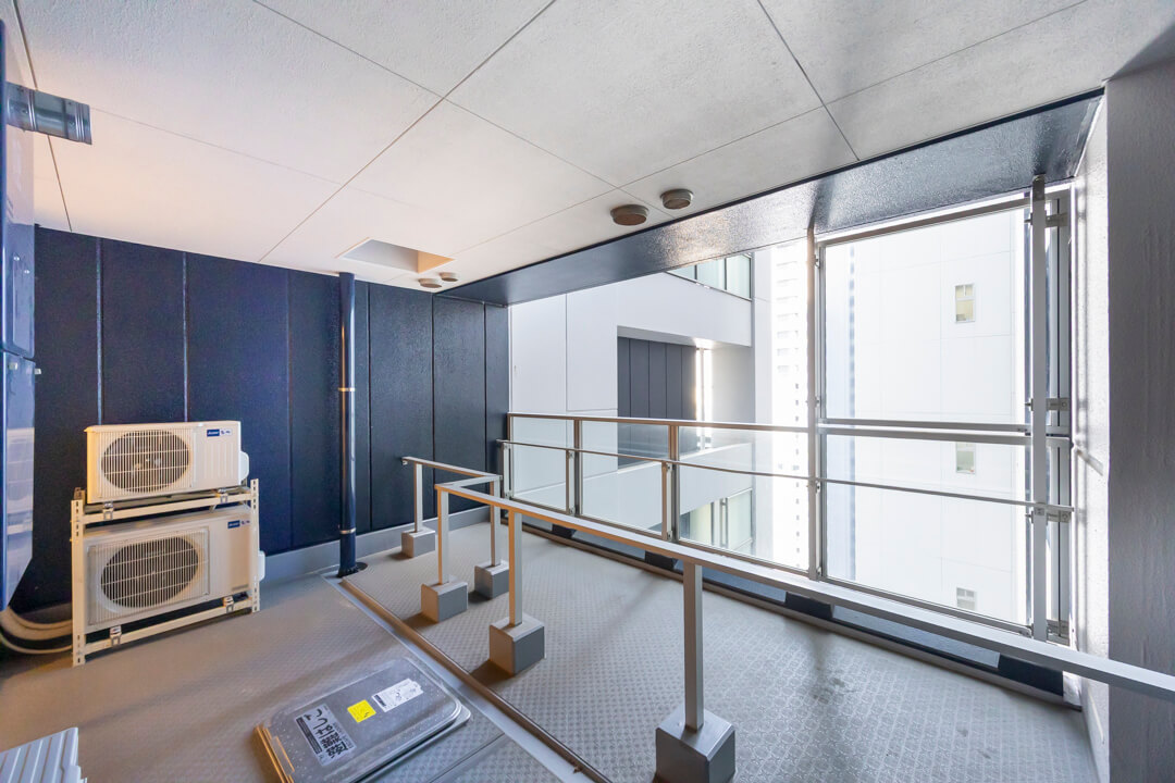 洋室に面した約9.75㎡のバルコニー。雨風が入りにくい空間です。