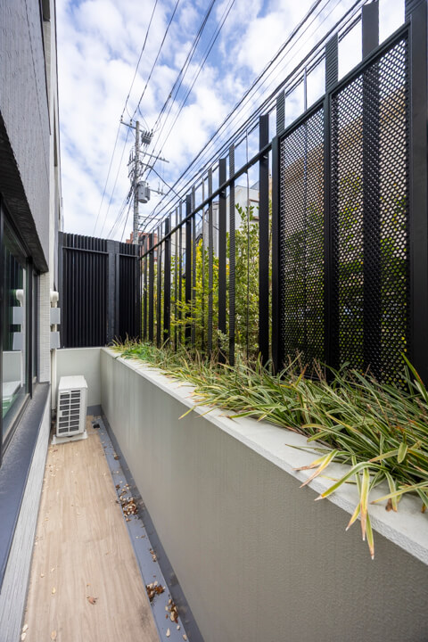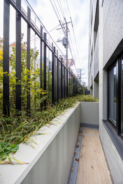 リビングダイニングと洋室に面したバルコニー。敷地内の緑が心地良さを与えてくれます。