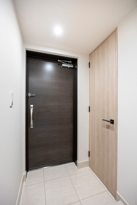 玄関照明は自動センサーへの切り替えが可能で、帰宅時に明るい空間で出迎えてくれます。電気の消し忘れも防げますね。