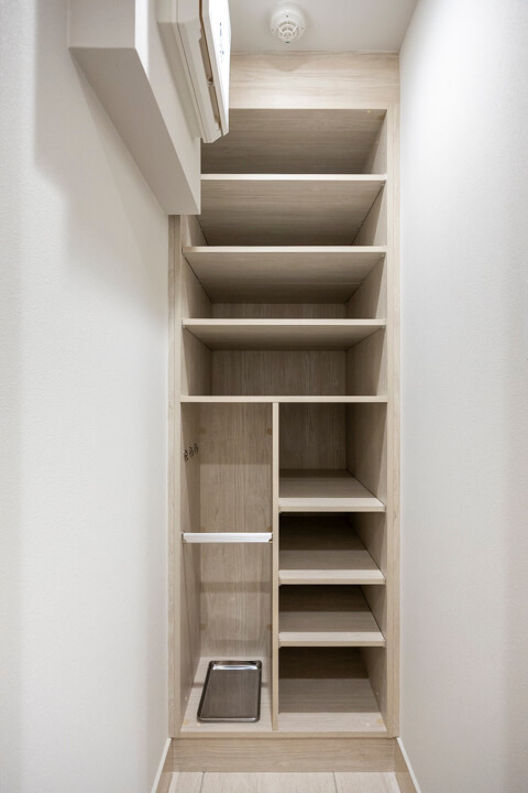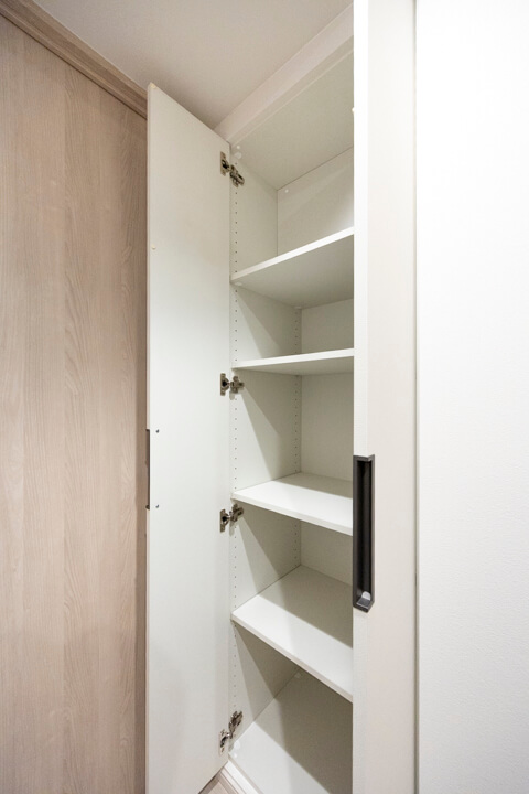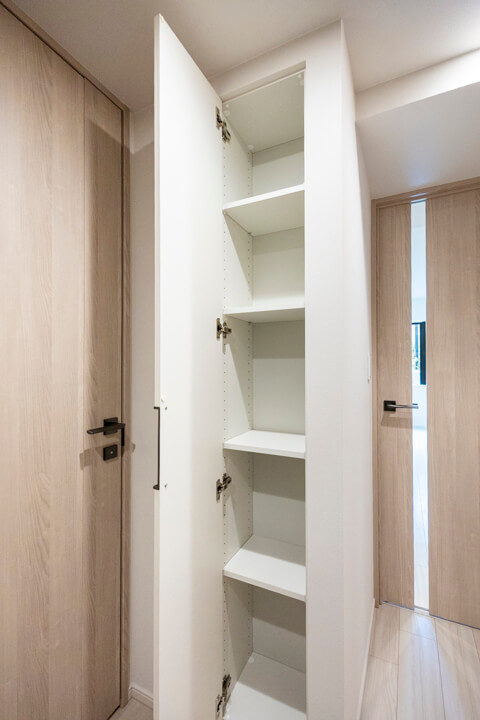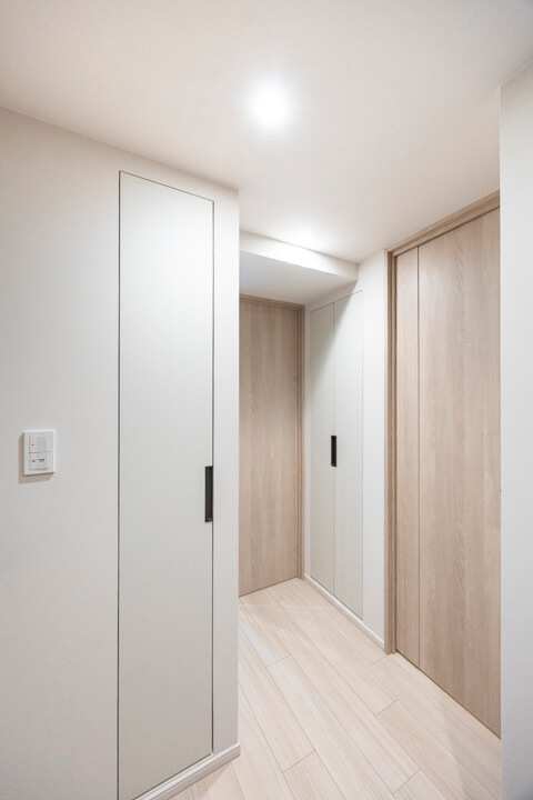 玄関にはSIC(シューズインクローゼット)を完備。靴はもちろん、スポーツ用品なども収納できそうな広さです。廊下にも2つの物入が設けられています。