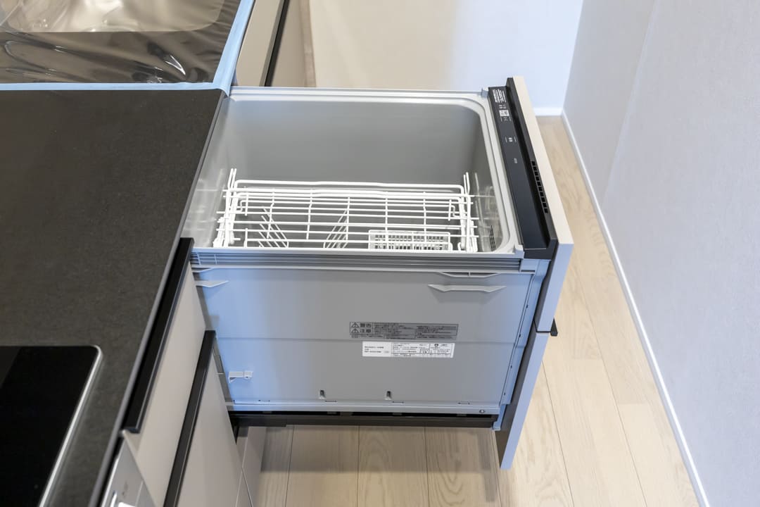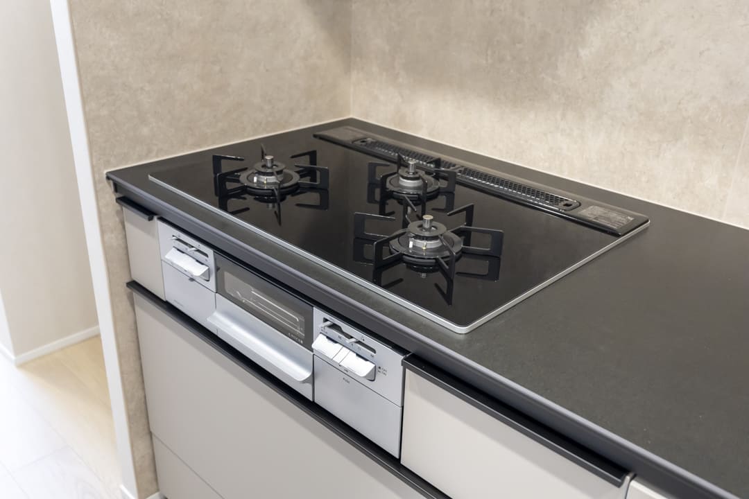 同時調理が叶うグリル付3口ガスコンロを内蔵。さらに、ディスポーザーと食洗機も完備されています。料理後すぐに生ゴミを処理できるので、悪臭の原因を防ぎ、掃除の手間を軽減。食器洗いも捗り、後片付けの時短が叶います。